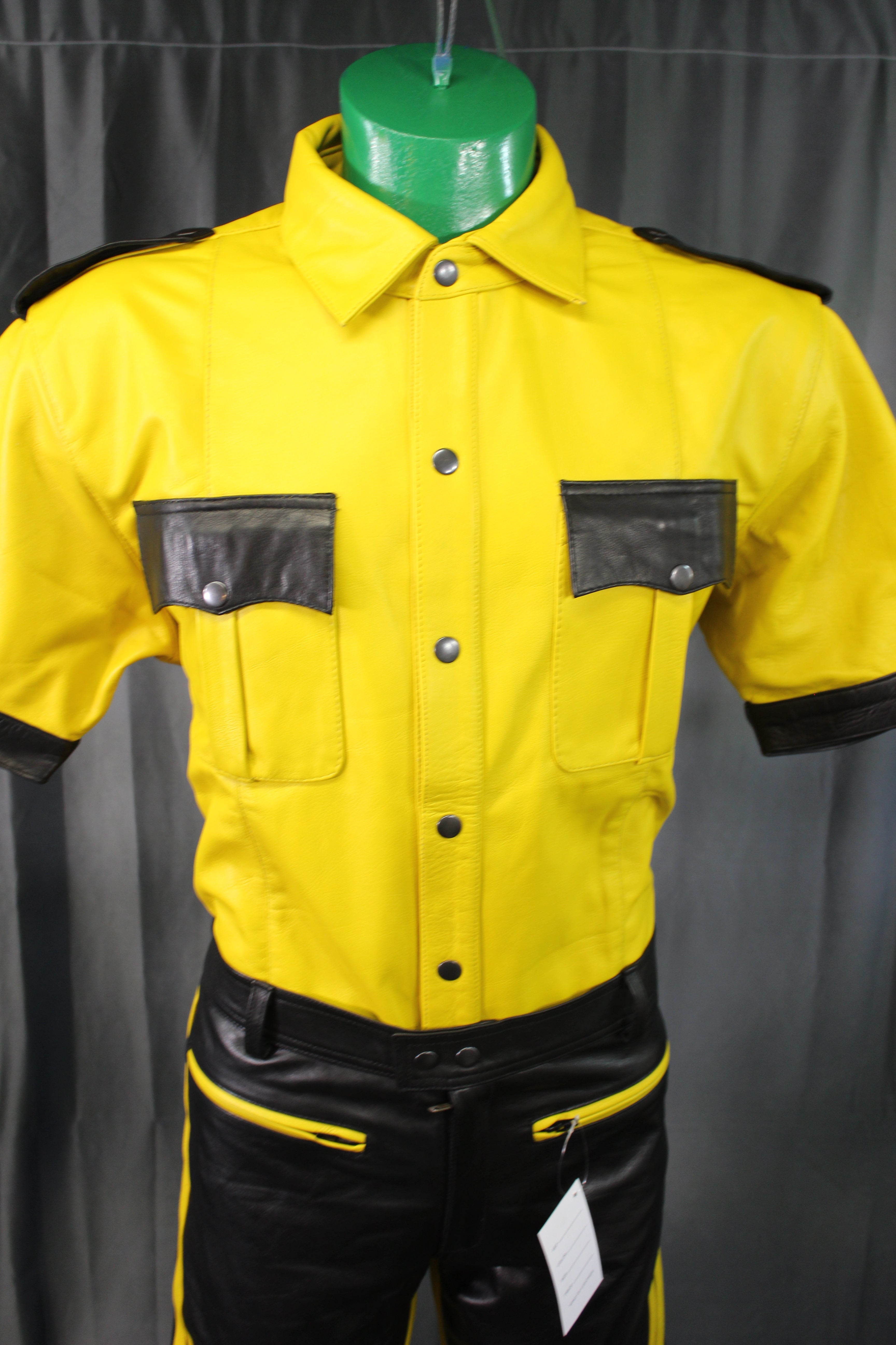OnF Leather Shirts in Yellow with Black Highlights ‐ 9X-Large