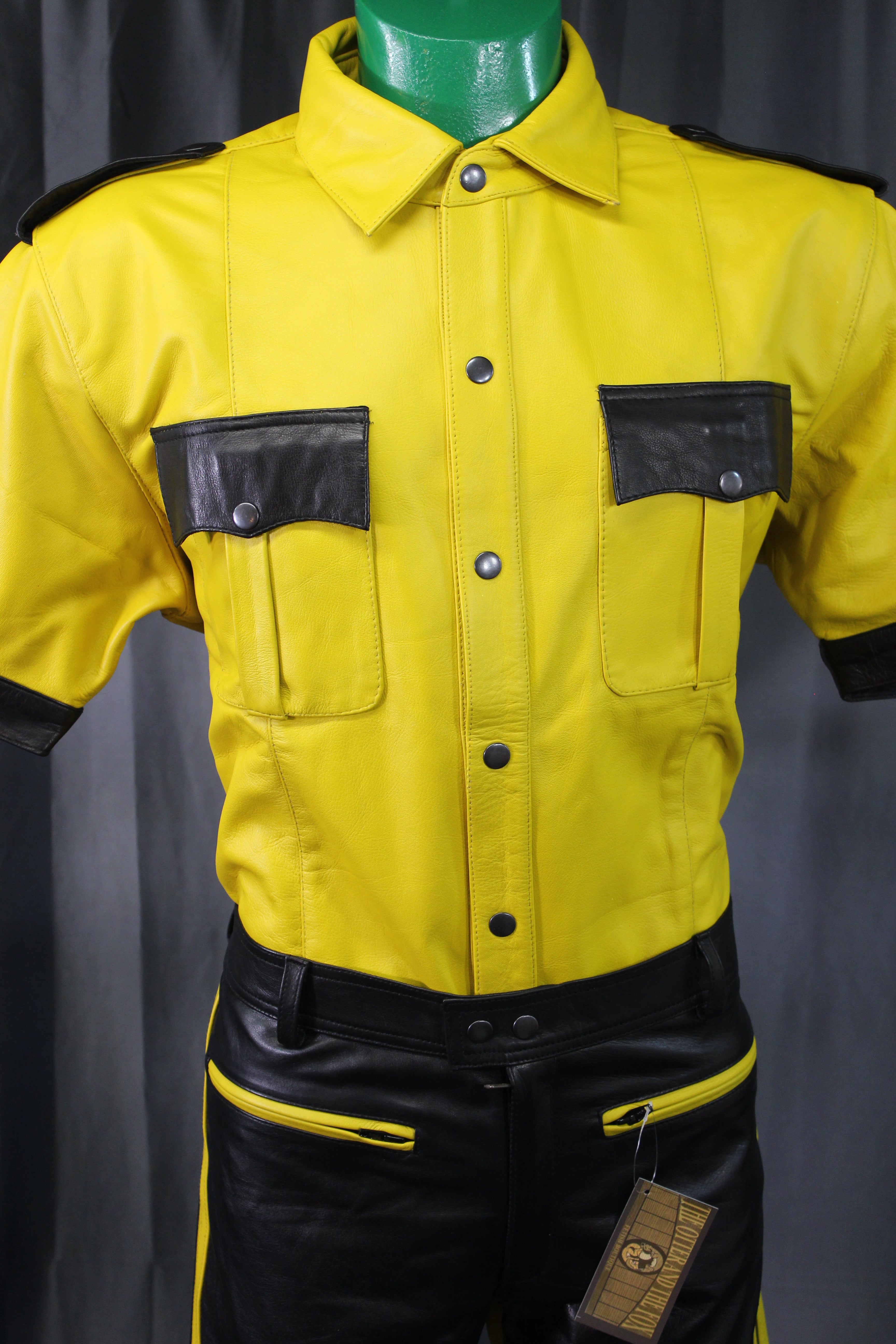 OnF Leather Shirts in Yellow with Black Highlights ‐ Large