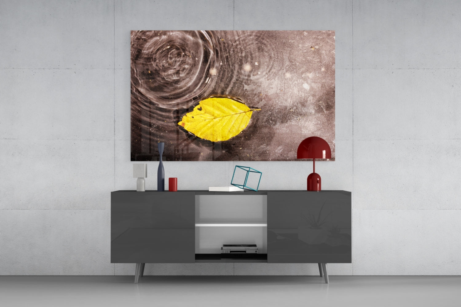 Yellow Leaf Glass Wall Art ‐ 35" x 24"