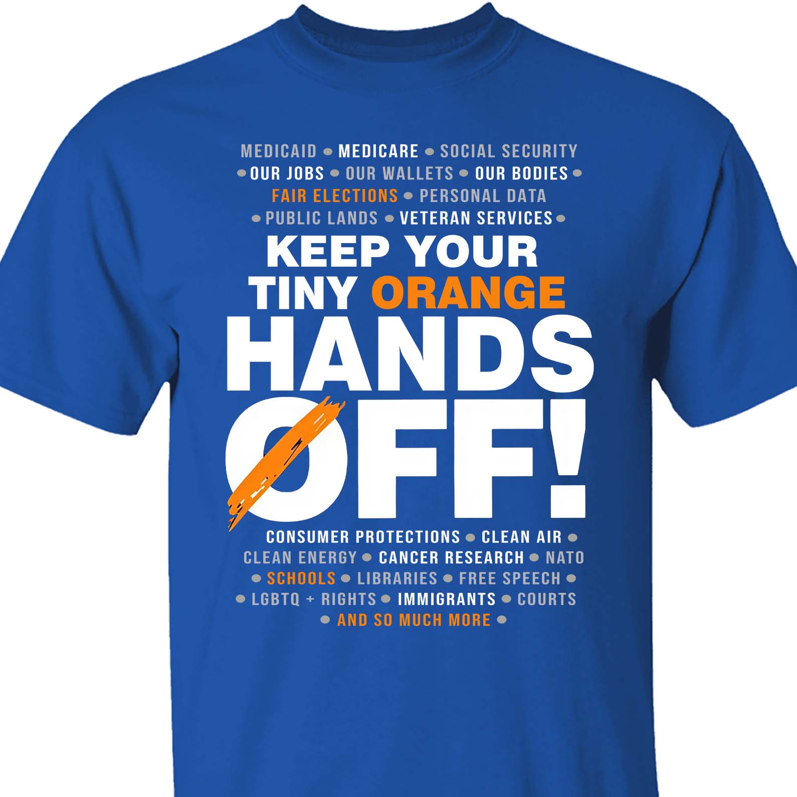 Hands Off Shirt – 8647 Anti Trump Political Activist Tee, Get Your Tiny Orange Hands Off Message Dark Shirt 682178 ‐ Basic Tee / Royal / 5XL