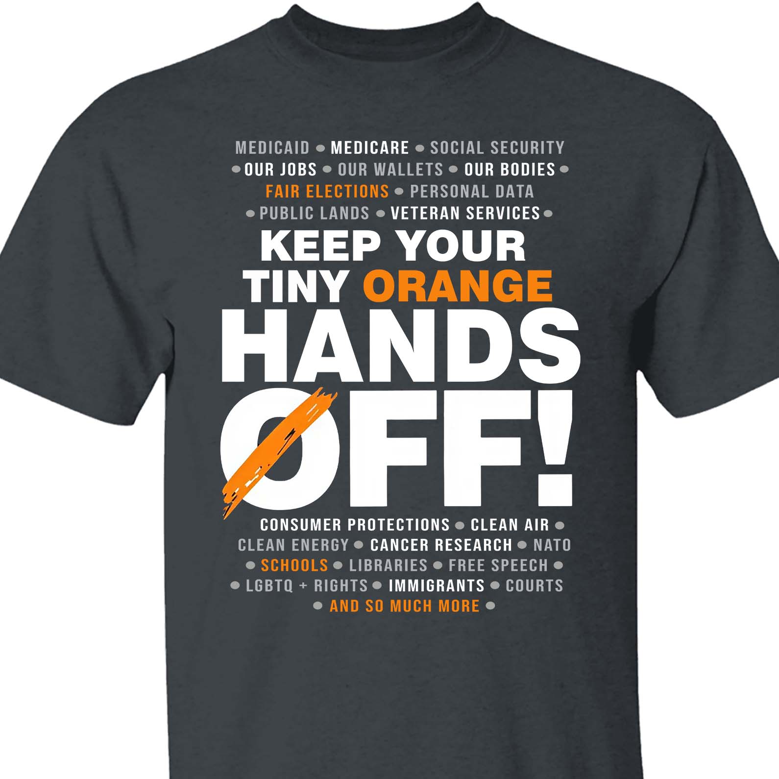 Hands Off Shirt – 8647 Anti Trump Political Activist Tee, Get Your Tiny Orange Hands Off Message Dark Shirt 682178 ‐ Basic Tee / Dark Heather / 6XL