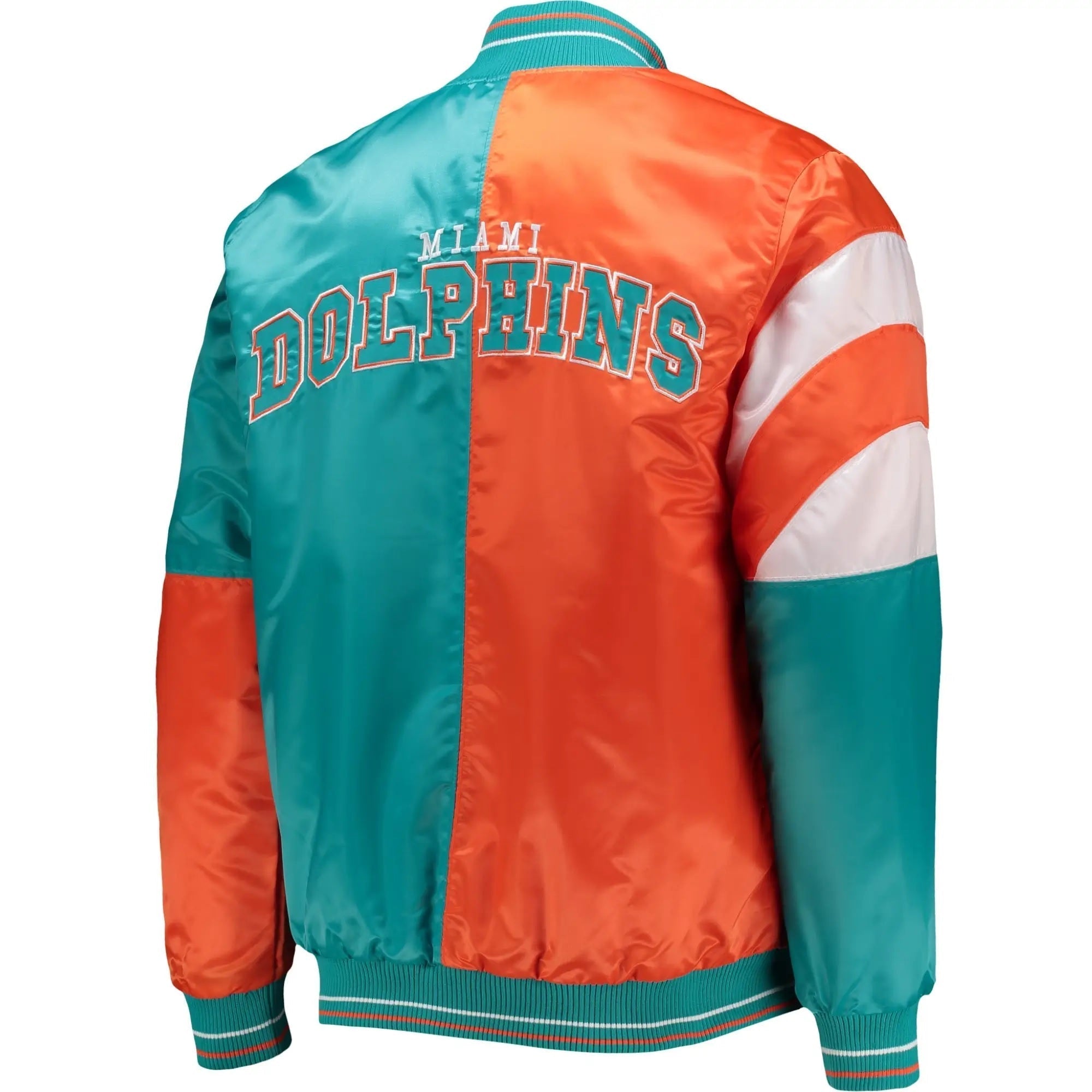 Miami Dolphins Satin Varsity Jacket Aqua and Orange ‐ Male / M
