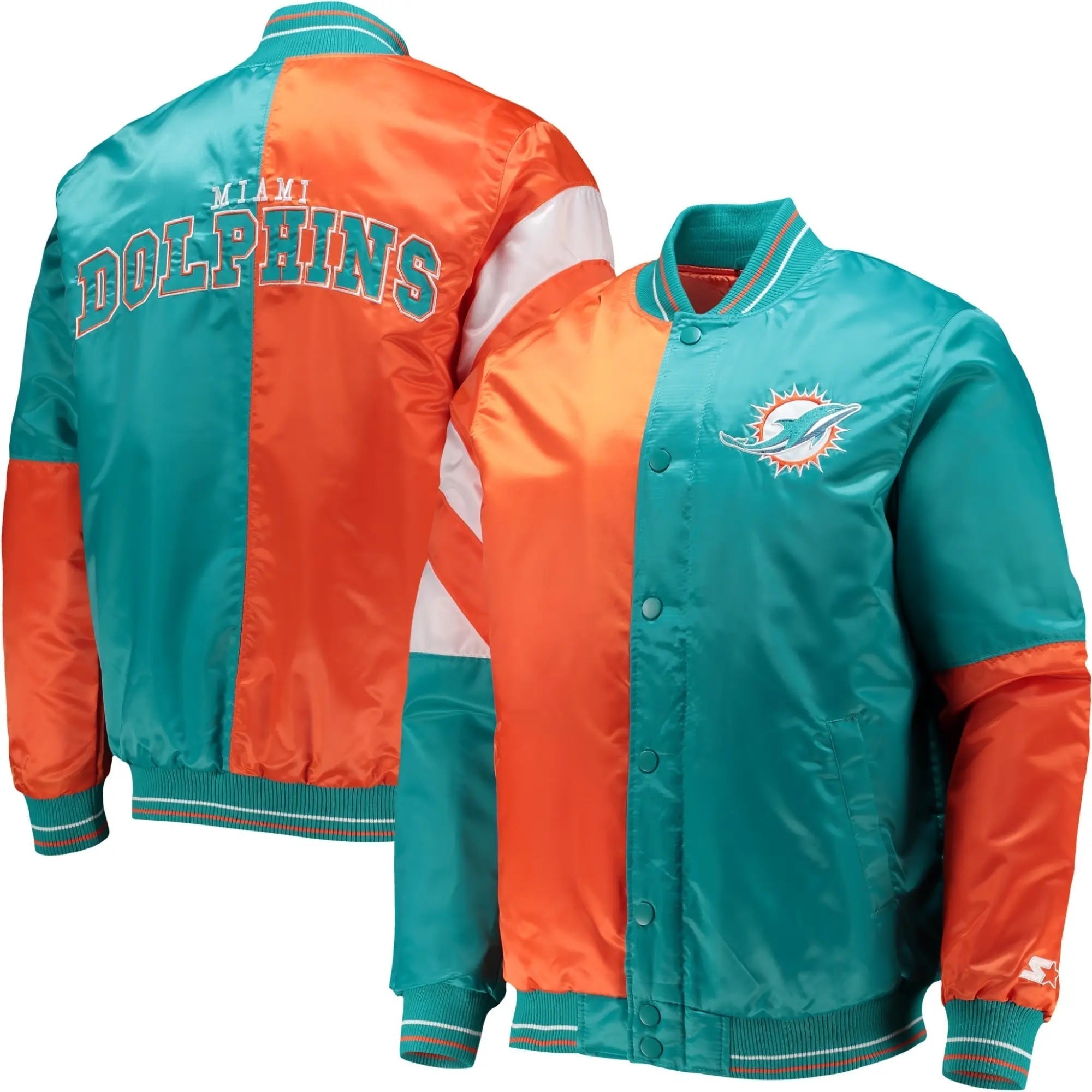 Miami Dolphins Satin Varsity Jacket Aqua and Orange ‐ Male / 4XL