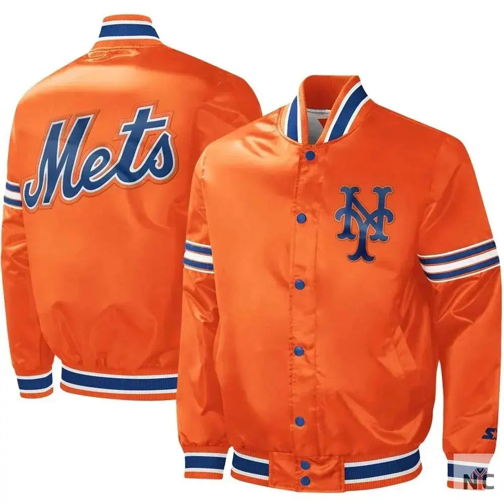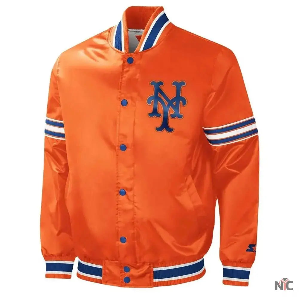 NY Mets Midfield Royal and Orange Satin Jacket ‐ Male / S / Orange