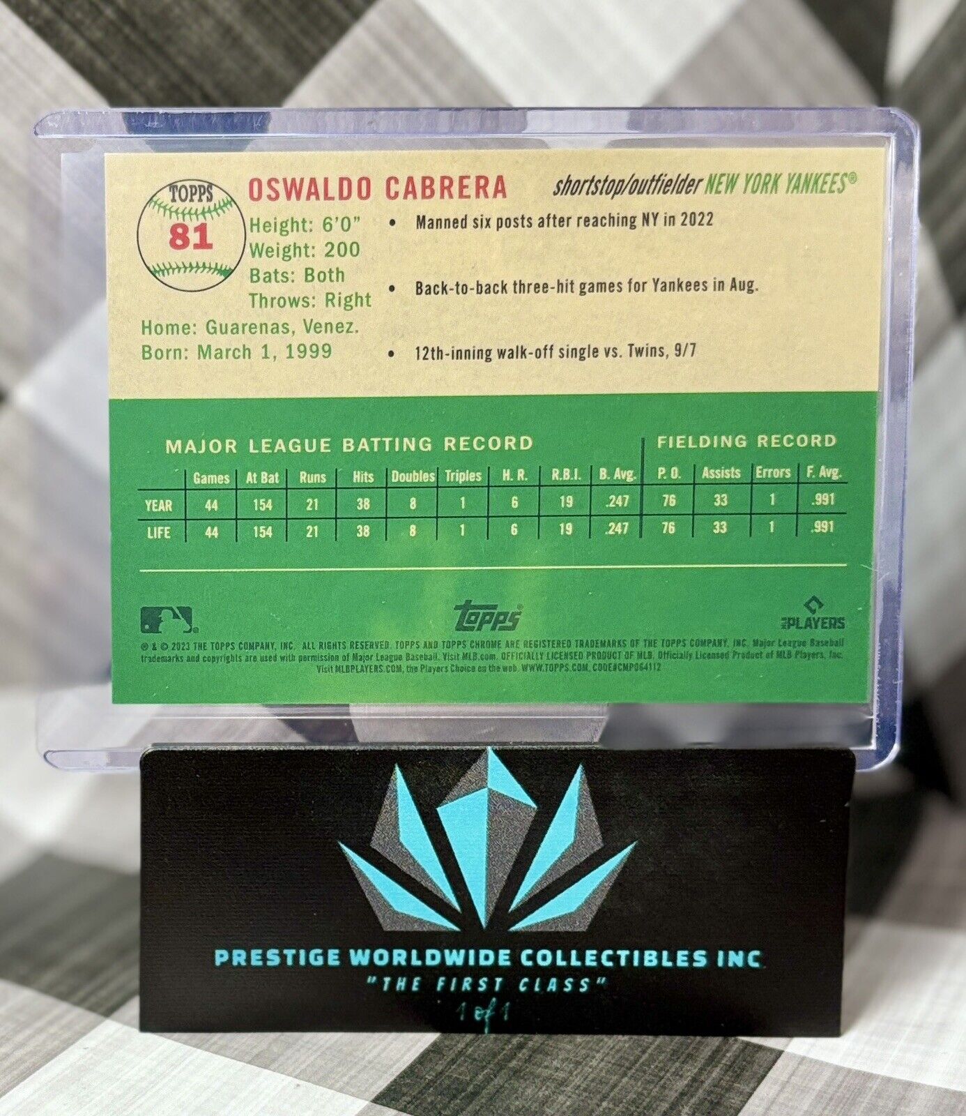 Oswaldo Cabrera 2023 Topps Chrome Platinum Orange Toile Rookie /25 #81 NYY RC
