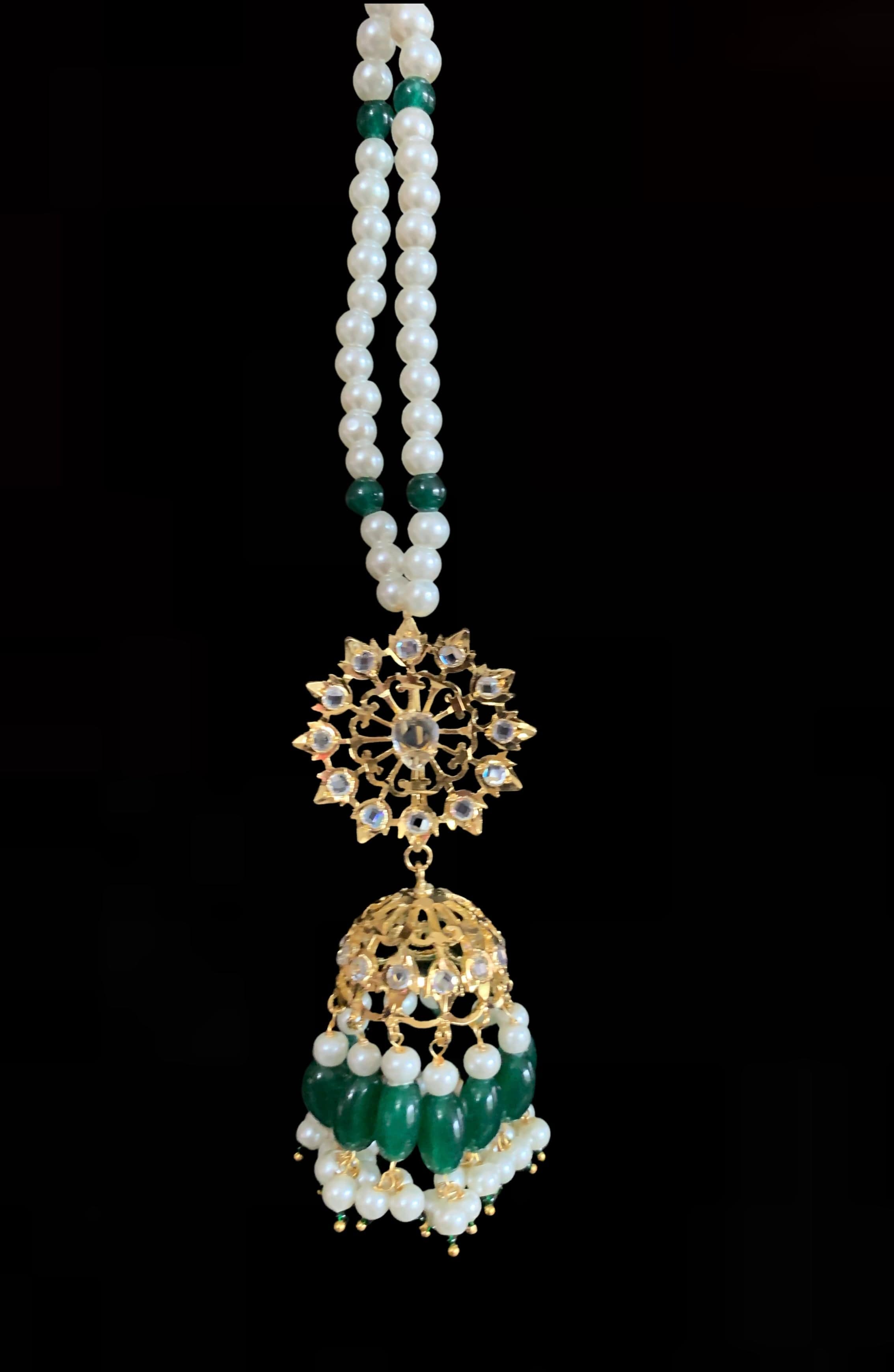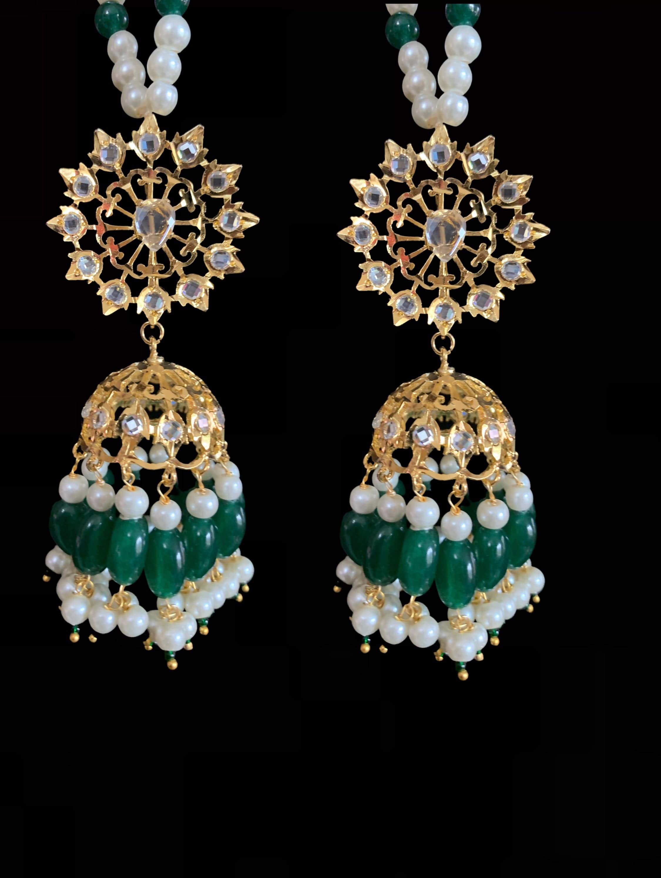 DER192 Karanphool jhumka - green ( SHIPS IN 4 WEEKS )