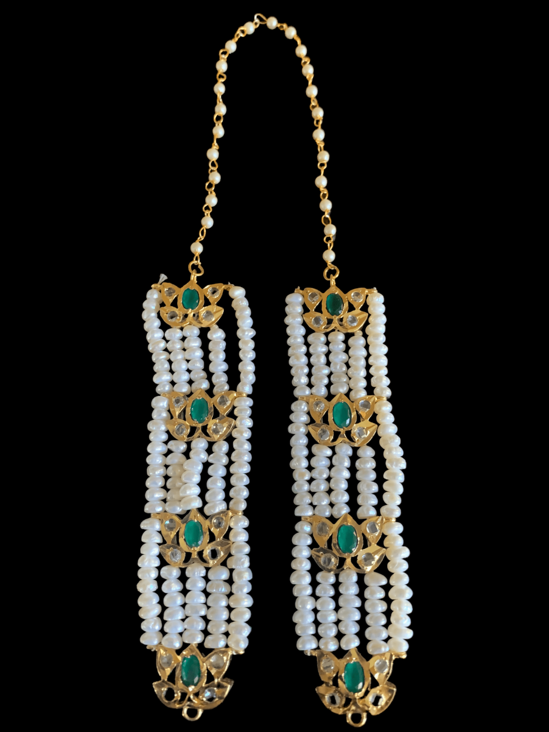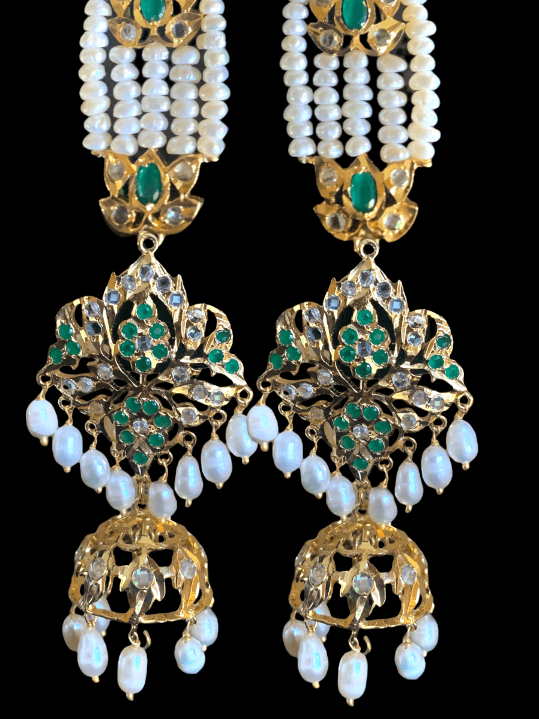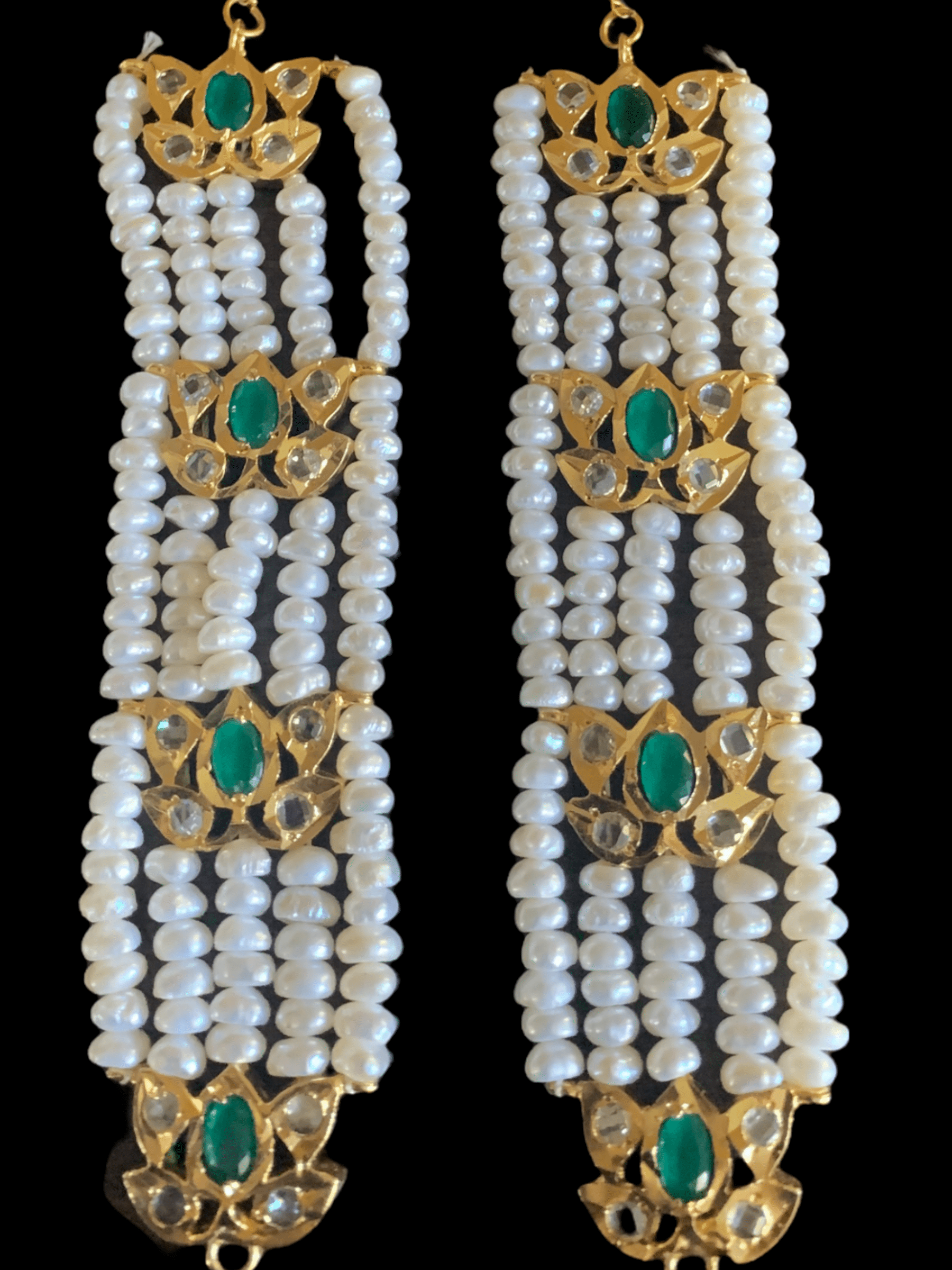 DER200 Lina sheeshphool inspired earrings in fresh water pearls - green ( SHIPS IN 3 WEEKS )