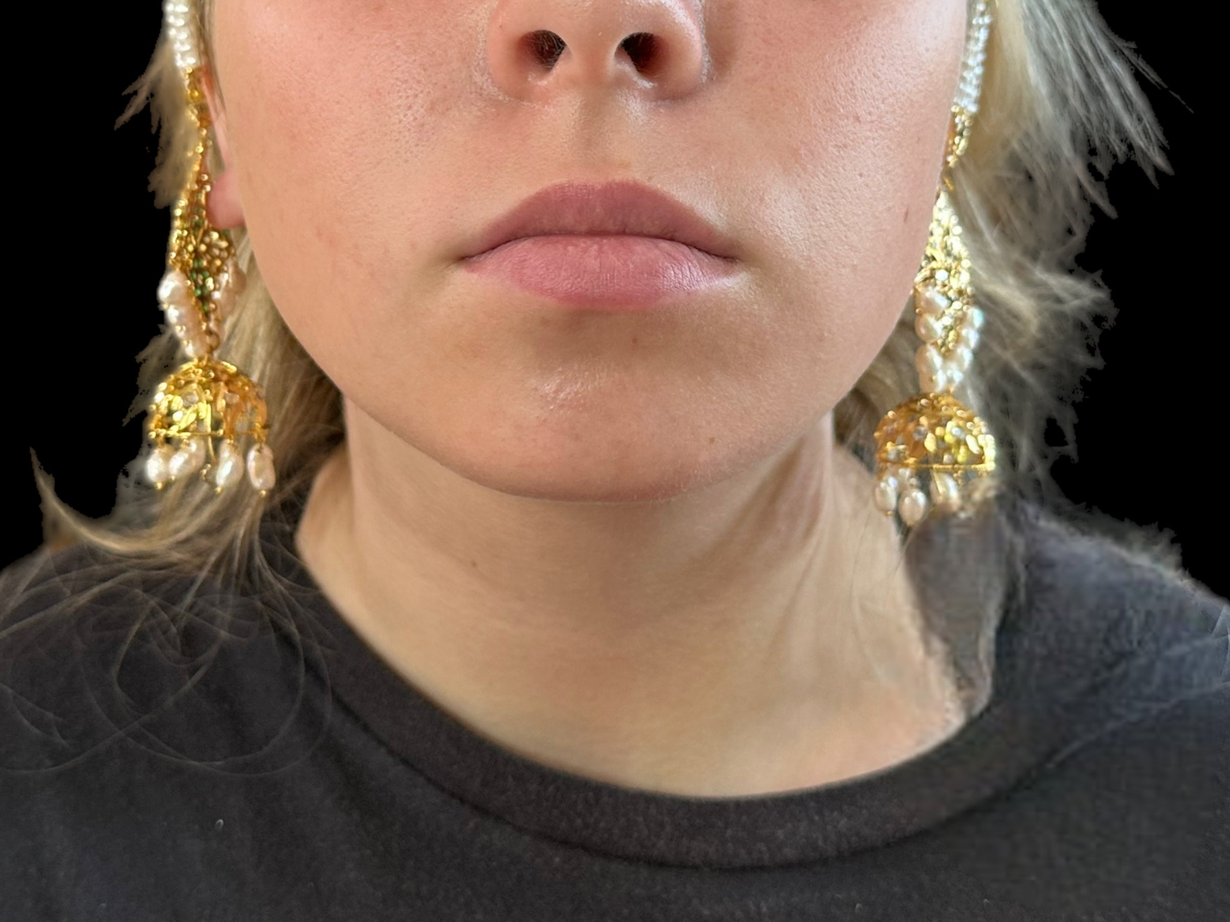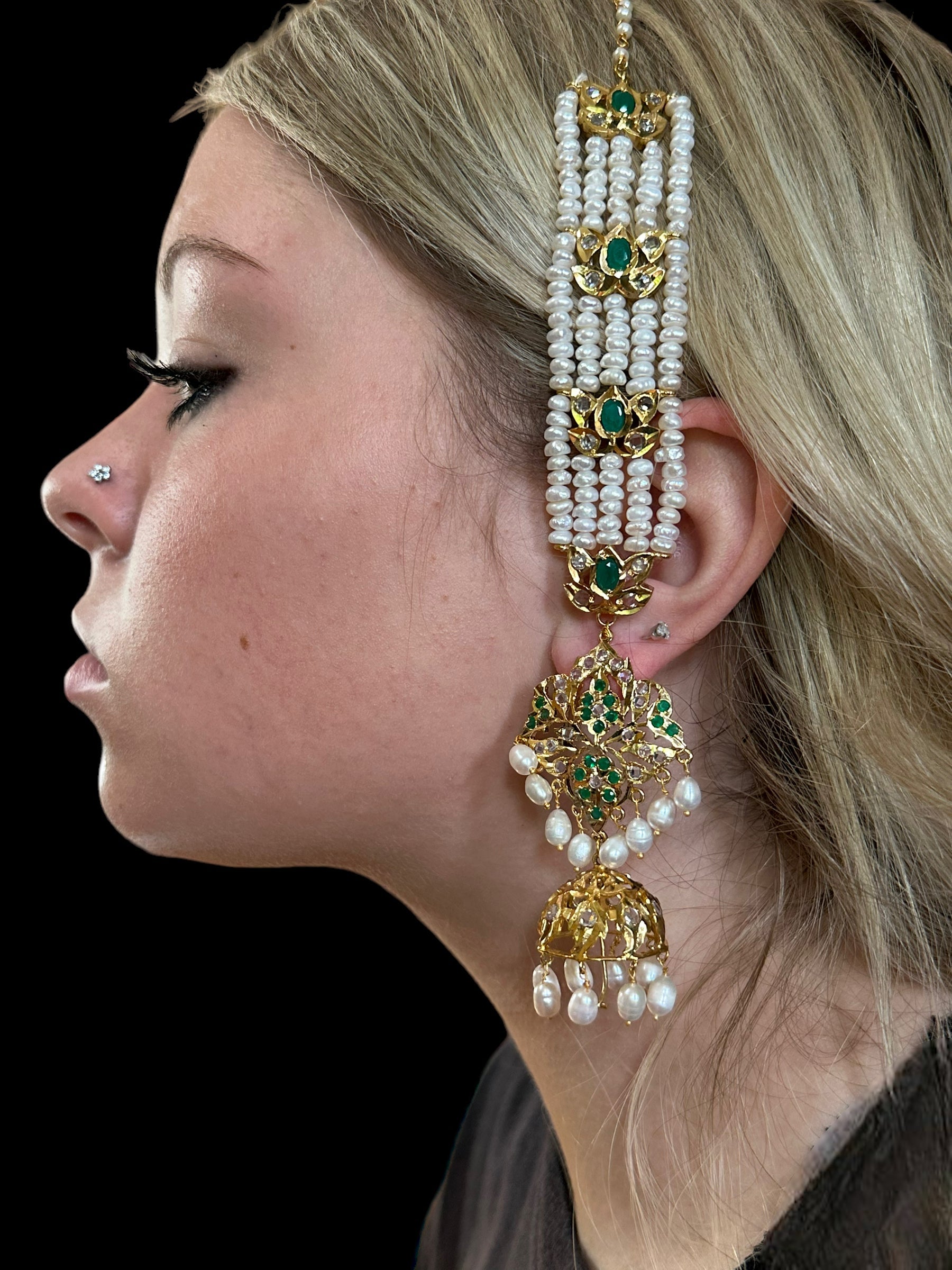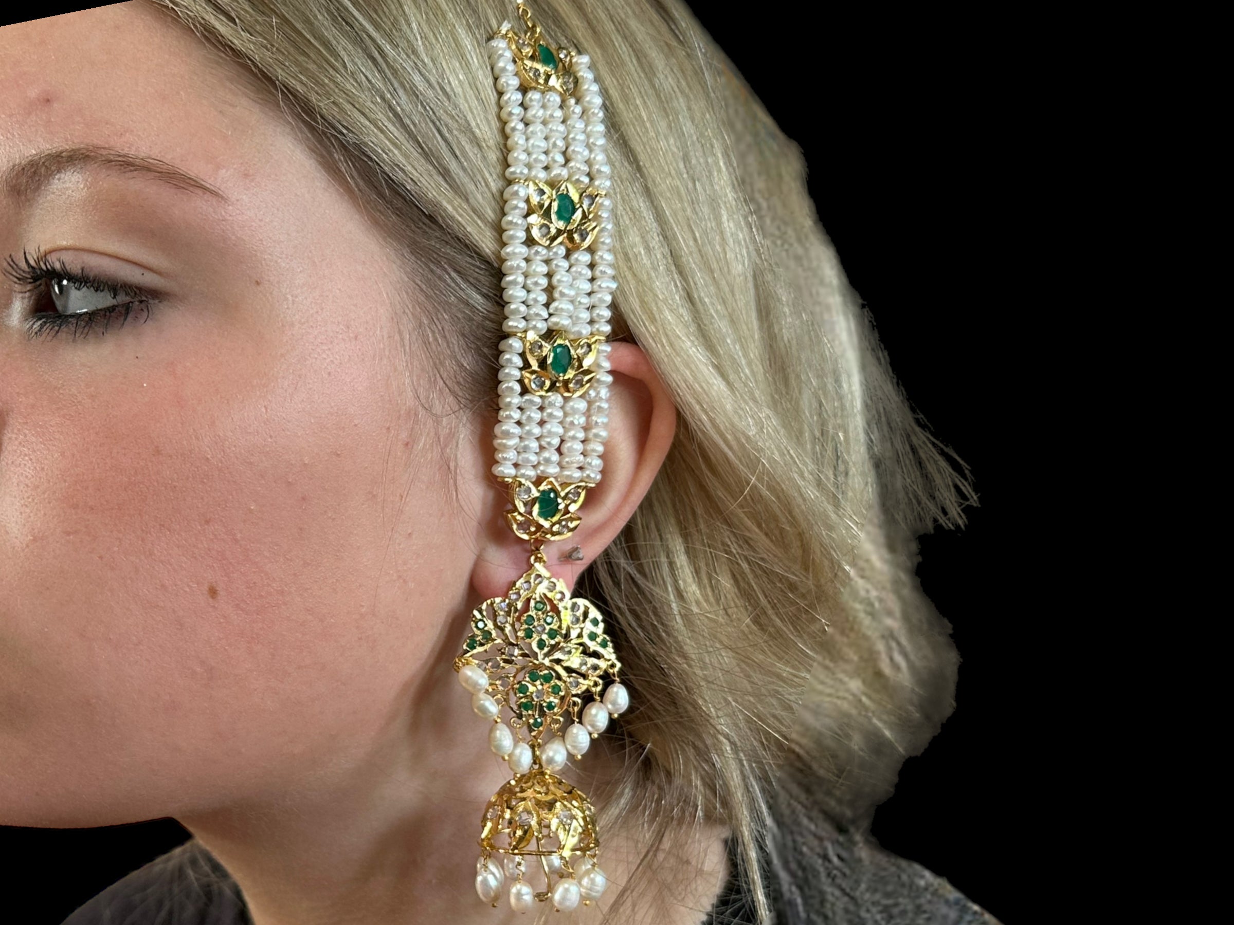 DER200 Lina sheeshphool inspired earrings in fresh water pearls - green ( SHIPS IN 3 WEEKS )