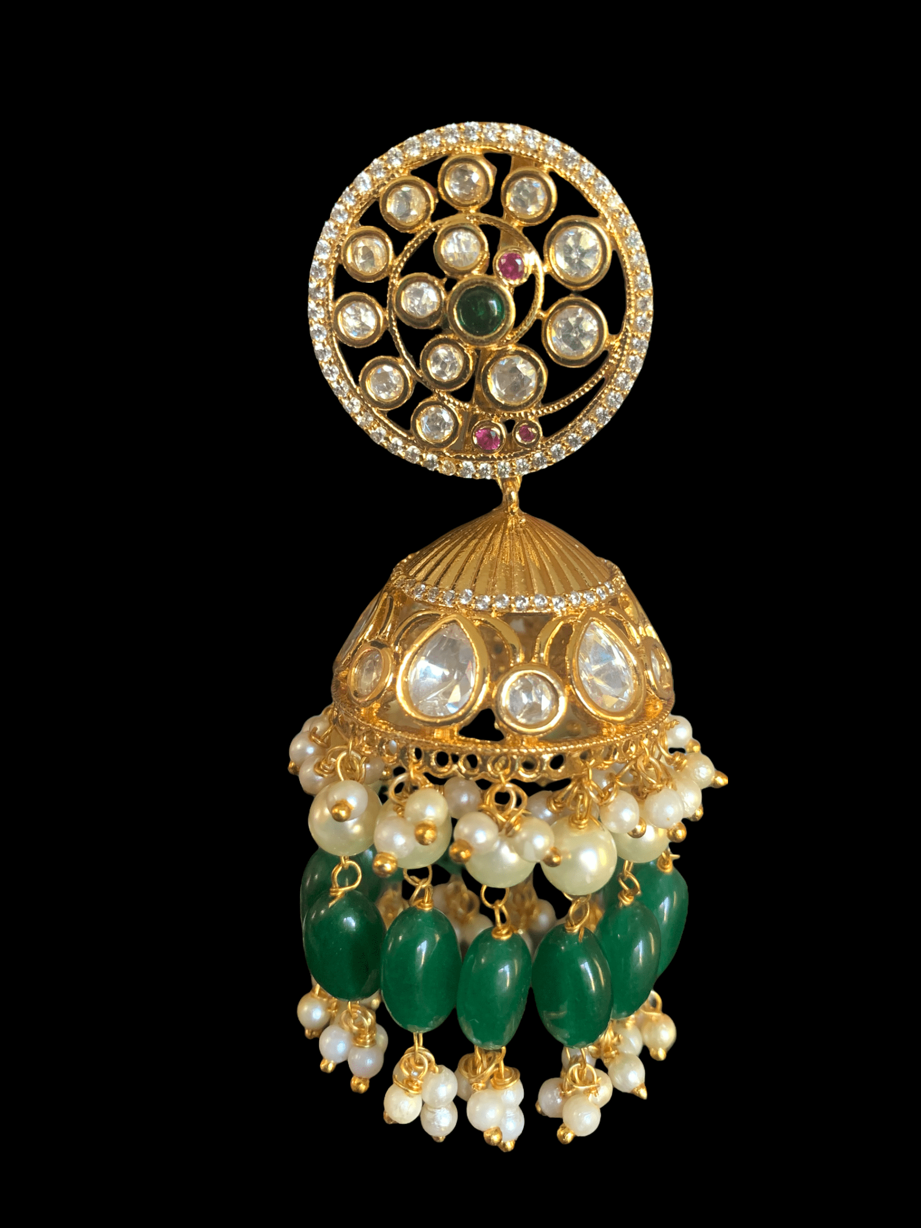 DER255 Shamini polki jhumka - green ( READY TO SHIP )