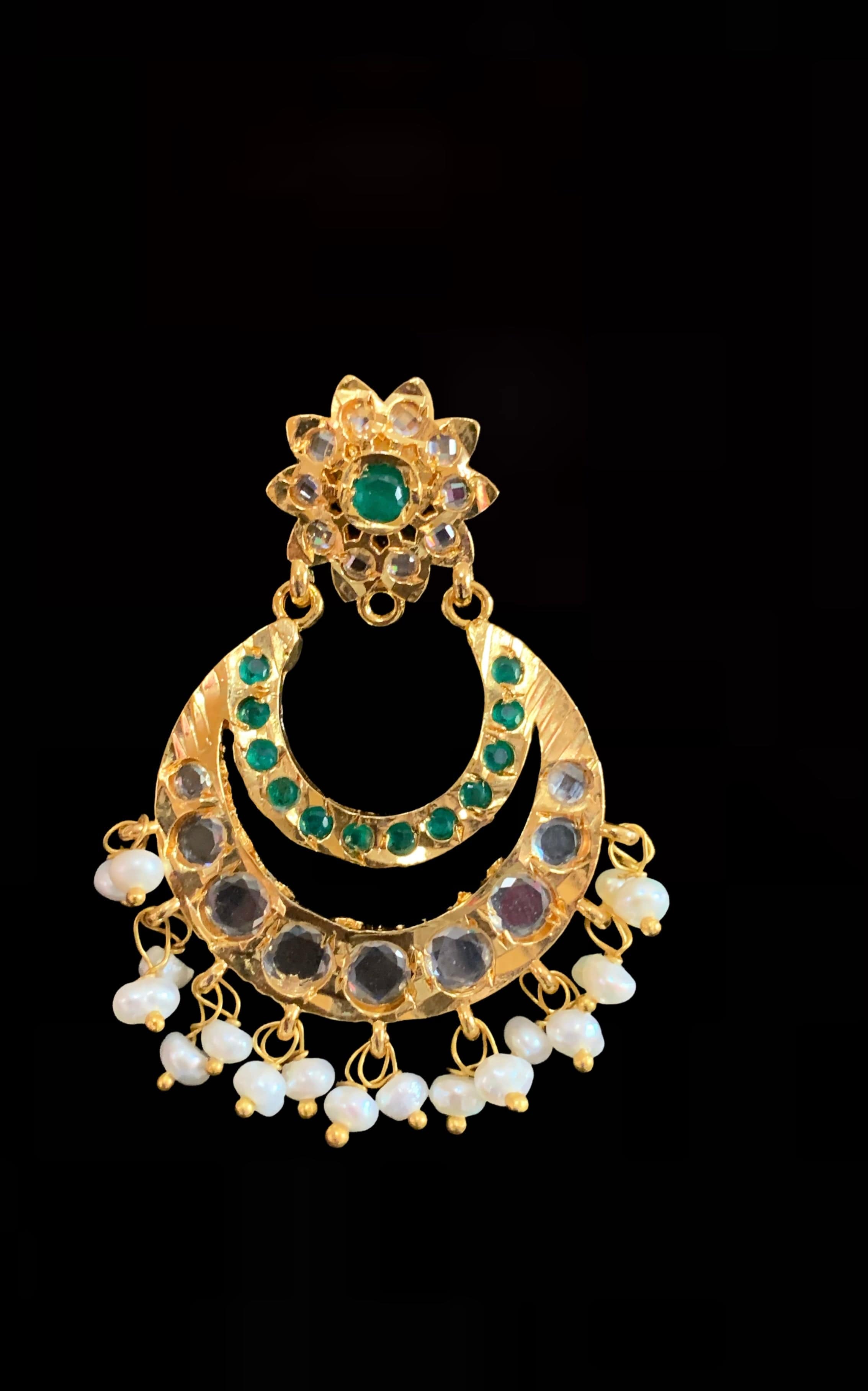 DER572 Kiran Chandbali in fresh water- green ( READY TO SHIP)