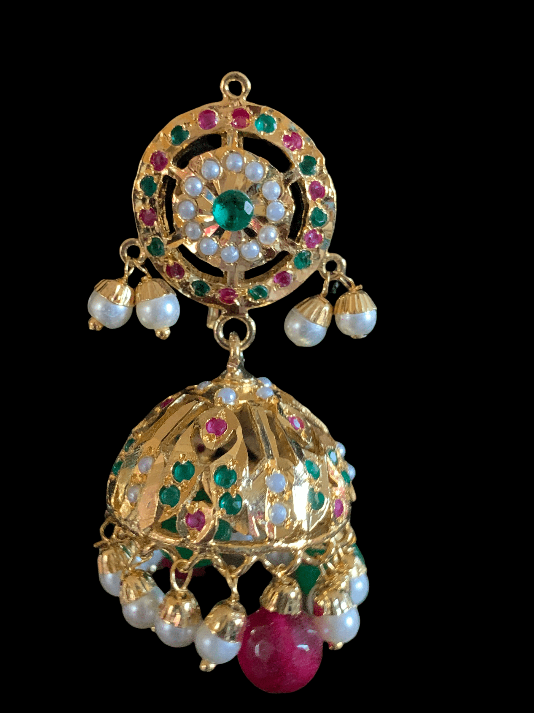 DER707 Hira jhumka in red green ( READY TO SHIP)