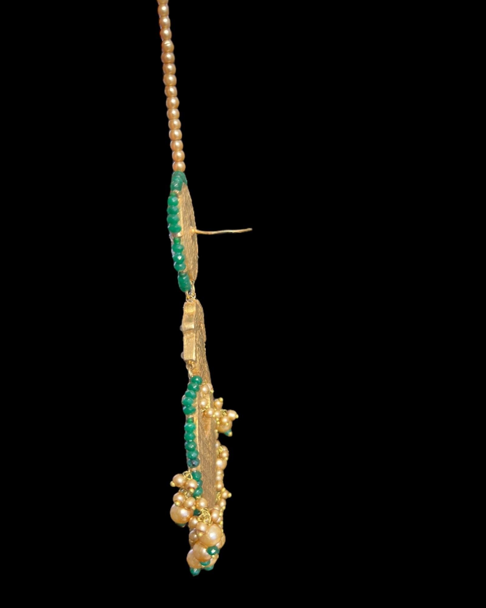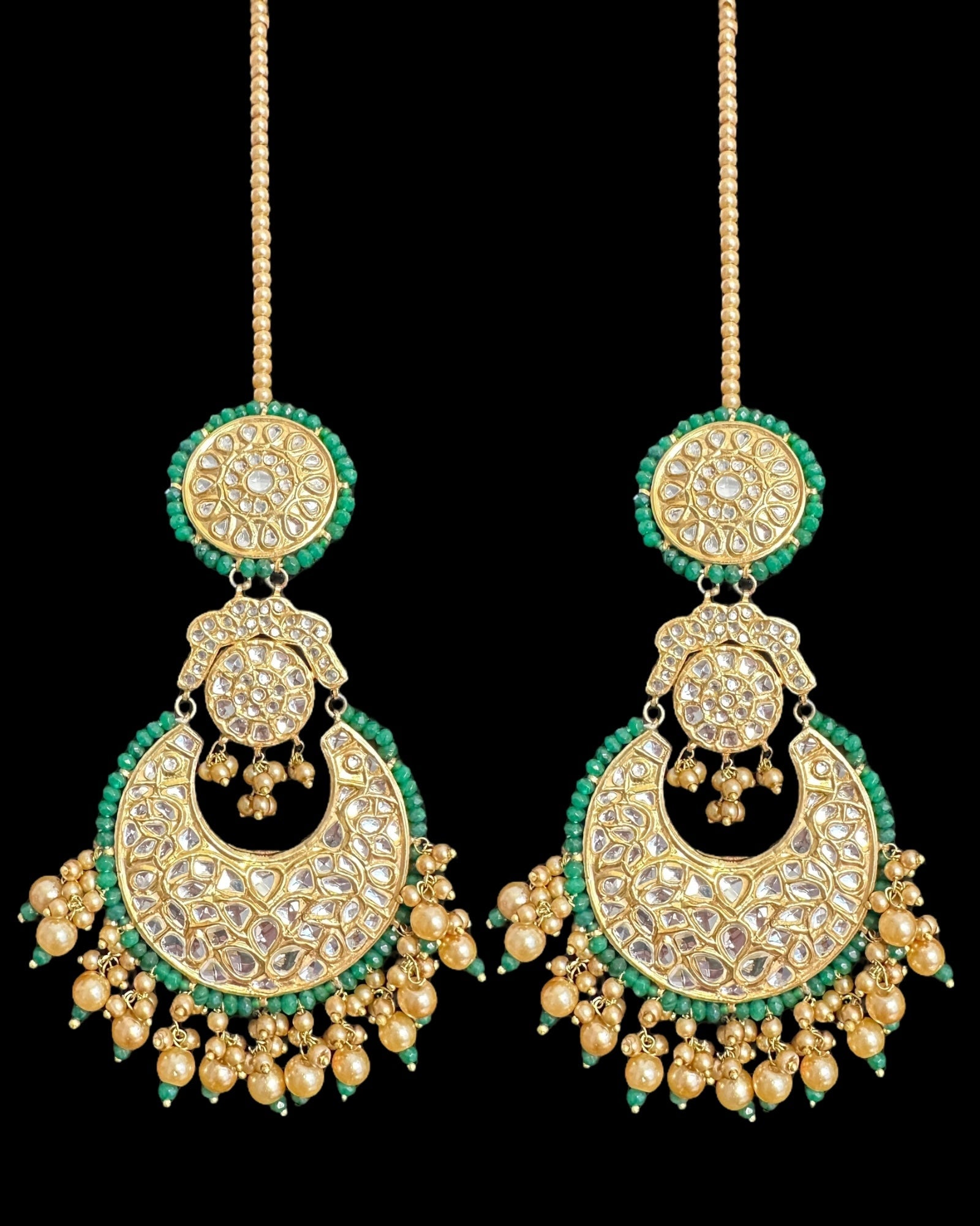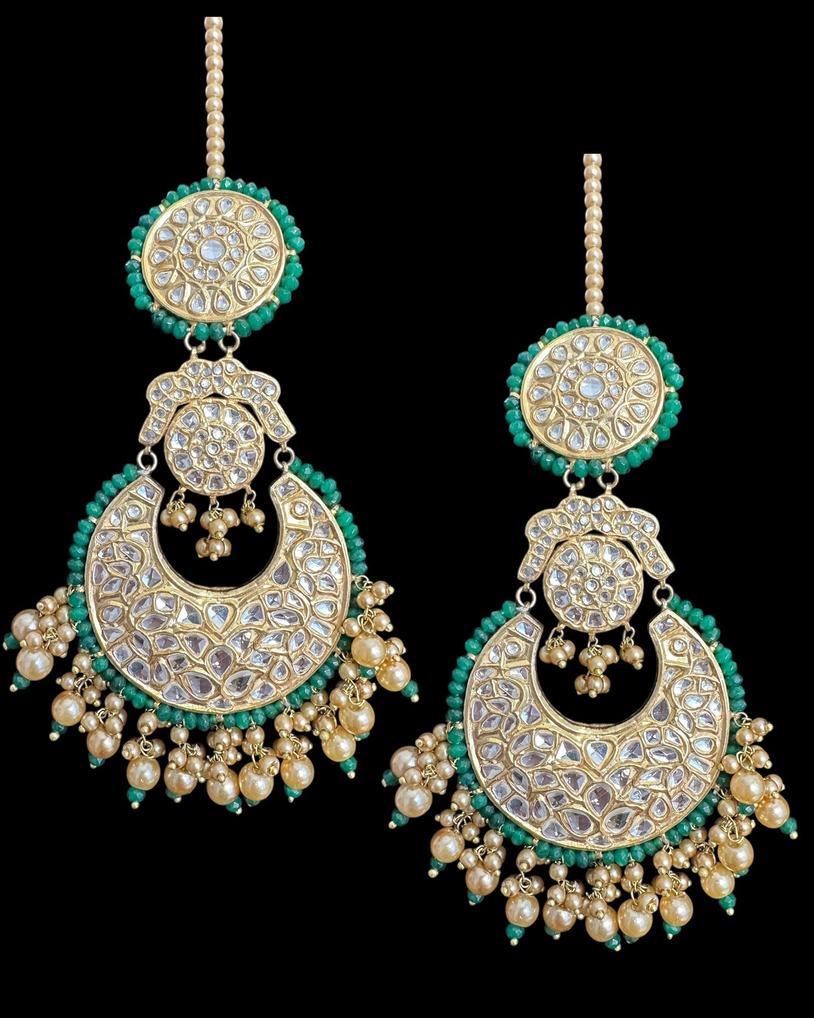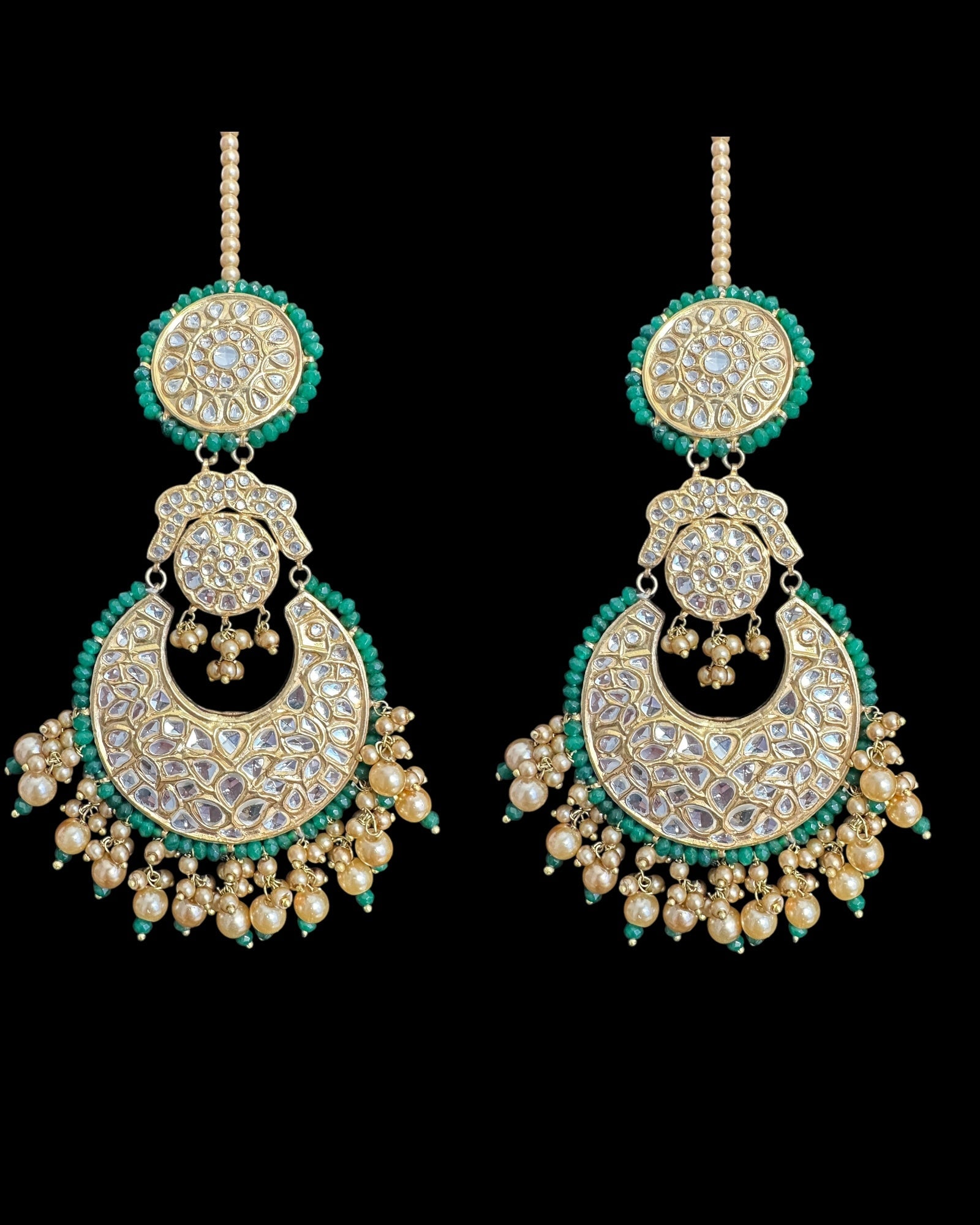DER732 kundan dangler earrings with green beads( READY TO SHIP )