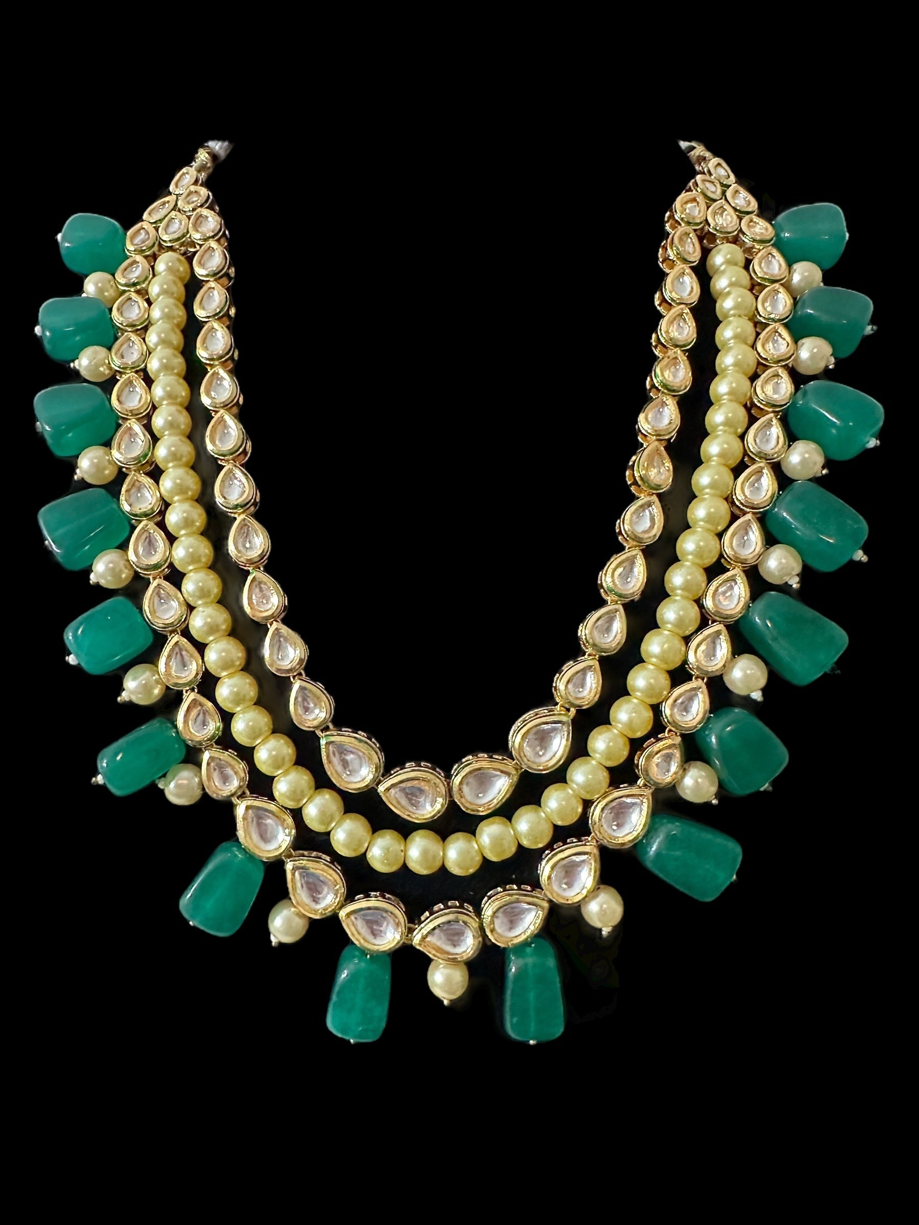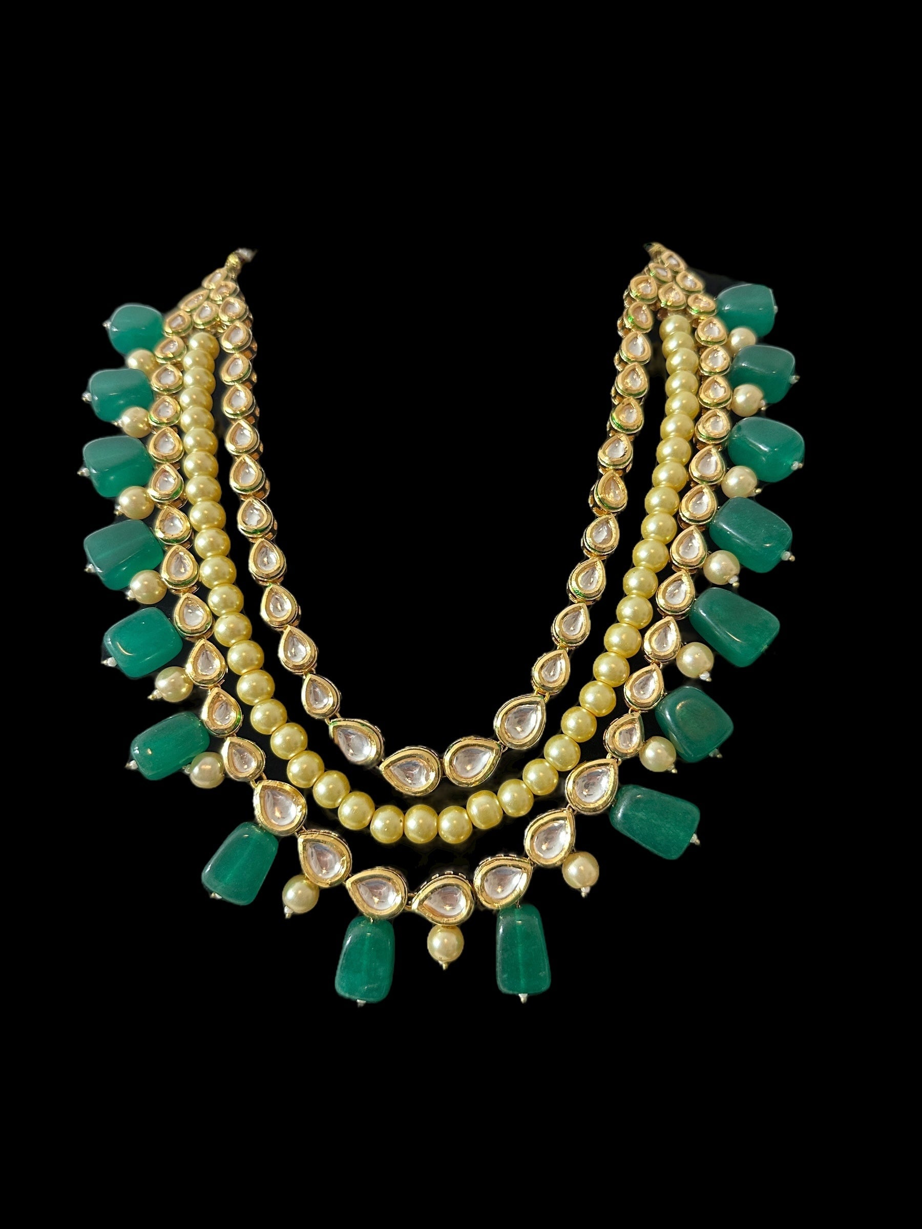 DNS199 Leila high quality ac kundan necklace with earrings in green ( READY TO SHIP )