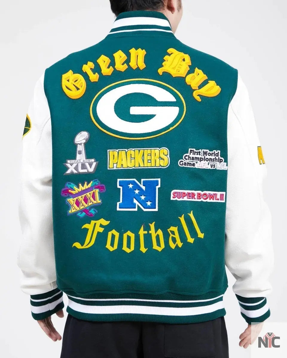 Green Bay Packers Old English Wool Varsity Jacket ‐ Male / 3XL