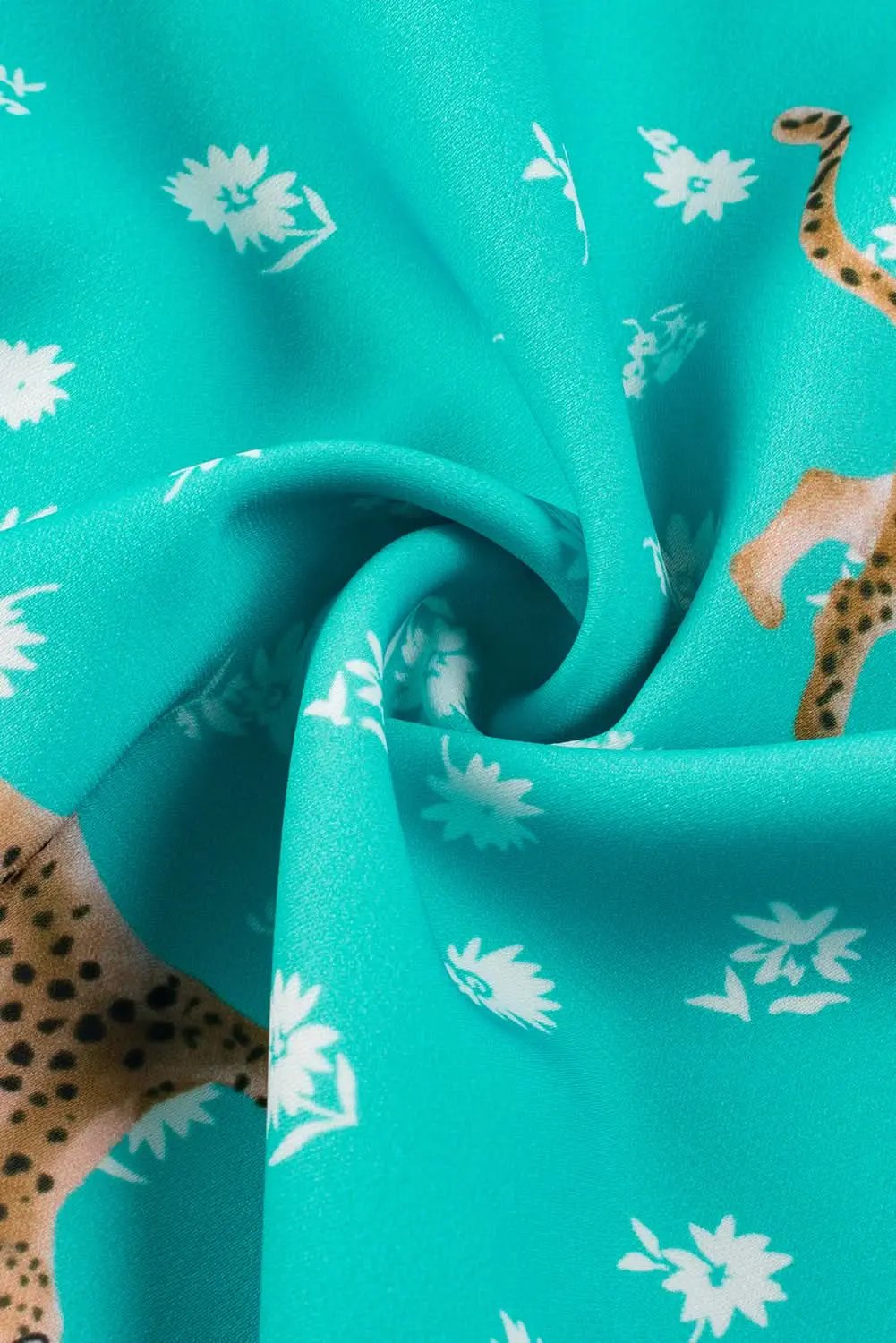 Elevate your casual wardrobe with our teal-green base featuring a bold cheetah print accented by delicate white florals for a chic, eye-catching look. The V-neckline flatters many silhouettes, while the short sleeves provide comfortable coverage.