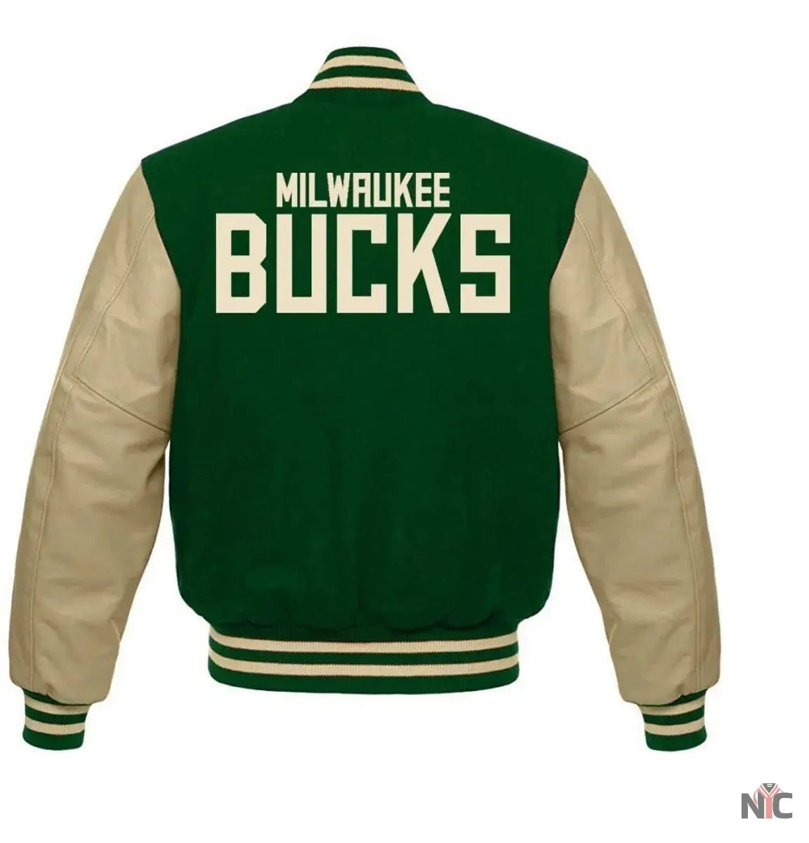 Milwaukee Bucks Letterman Beige and Green Jacket