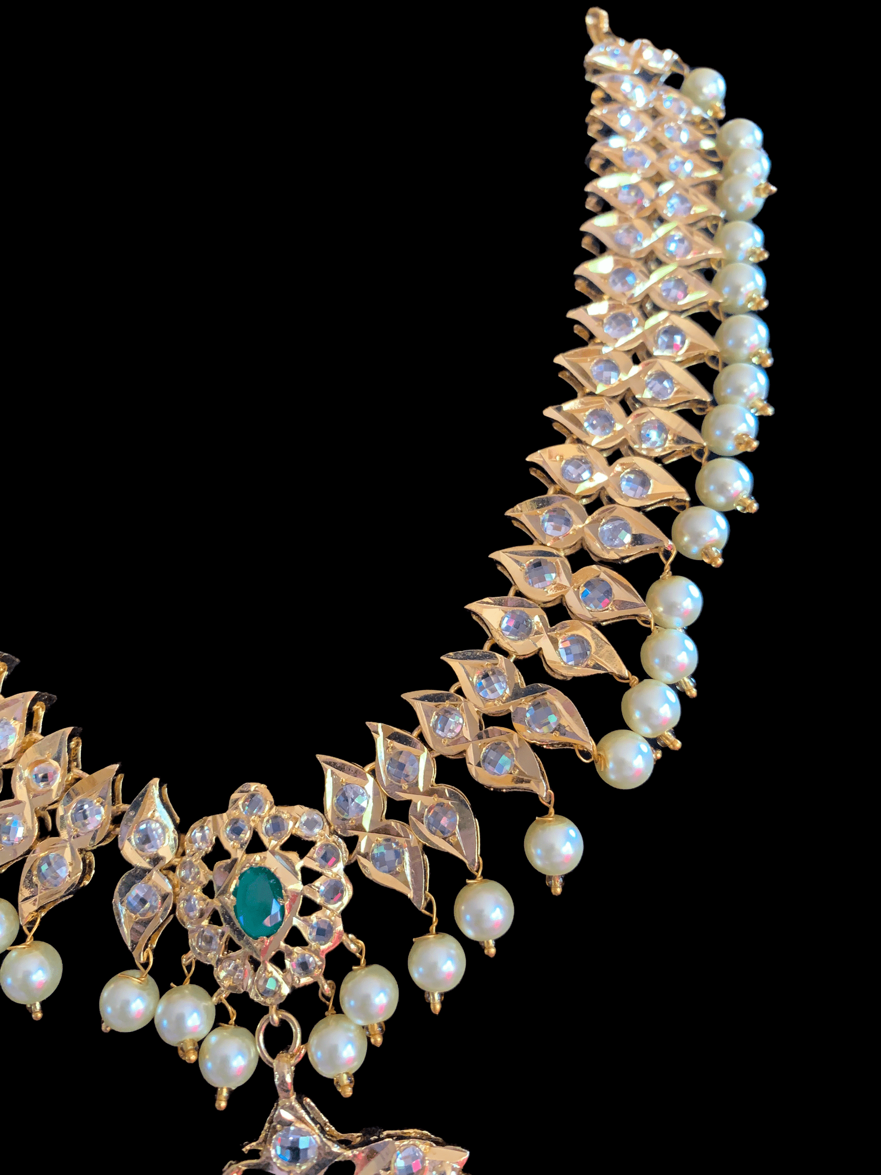 NS207 Ila nizami mango style bridal necklace with earrings in green ( SHIPS IN 4 WEEKS )