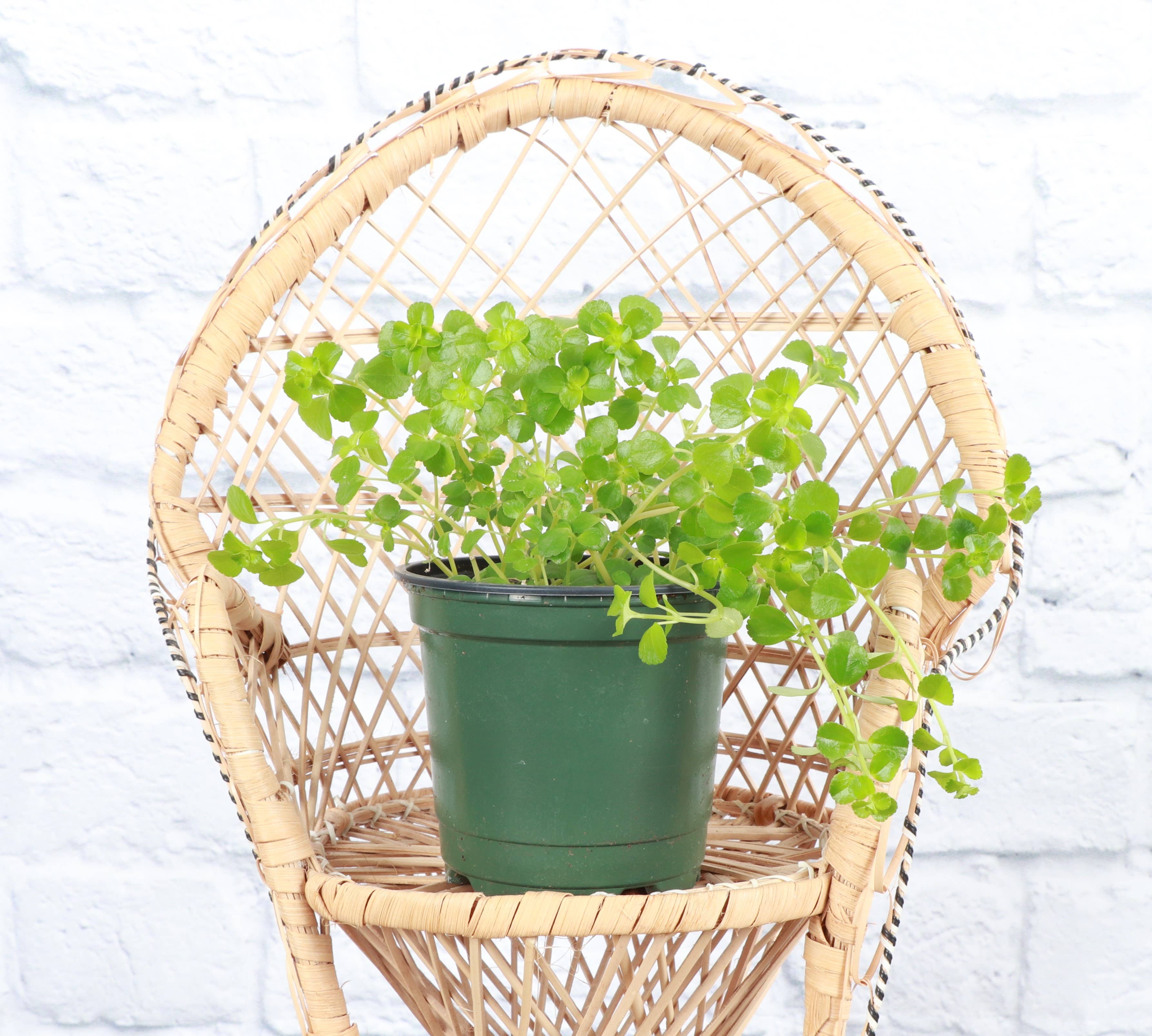 Green Baby Tears is known for its tiny green leaves with scalloped edges. These densely packed leaves love to trail down a windowsill and this plant is perfect for a hanging planter! Baby Tears is easy to care for and pet safe. Botanical Name: Pilea depressa. Thrives in medium to indirect bright sunlight. This plant will arrive in a 4" diameter plastic growers pot with drainage holes. Pot color may vary. Height will range from 4-6" tall. Decorative pots not included.