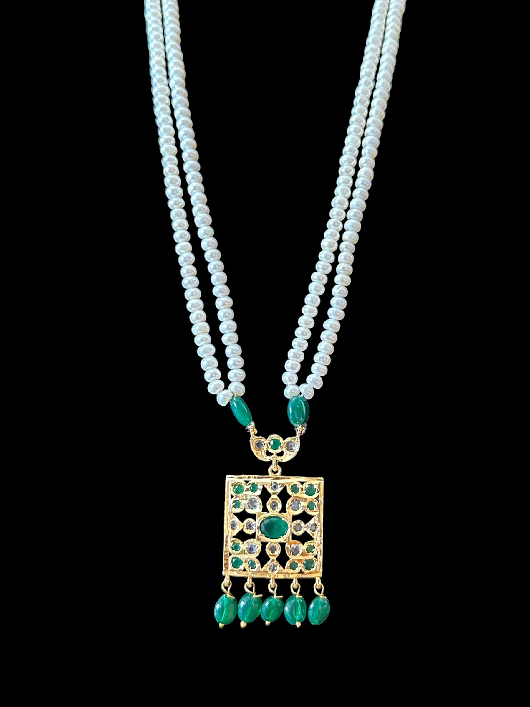 PS431 Zuni fresh water pearl pendant set in green beads ( READY TO SHIP)