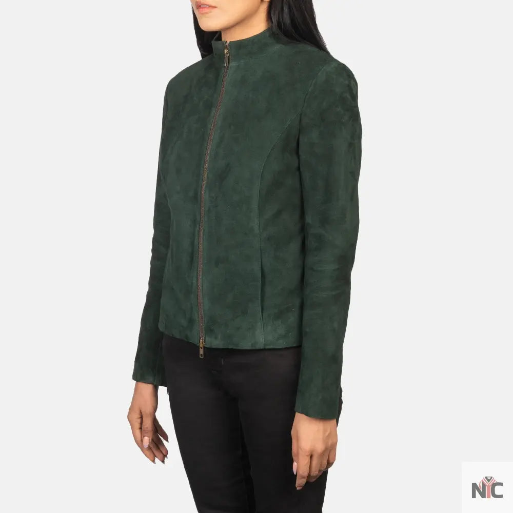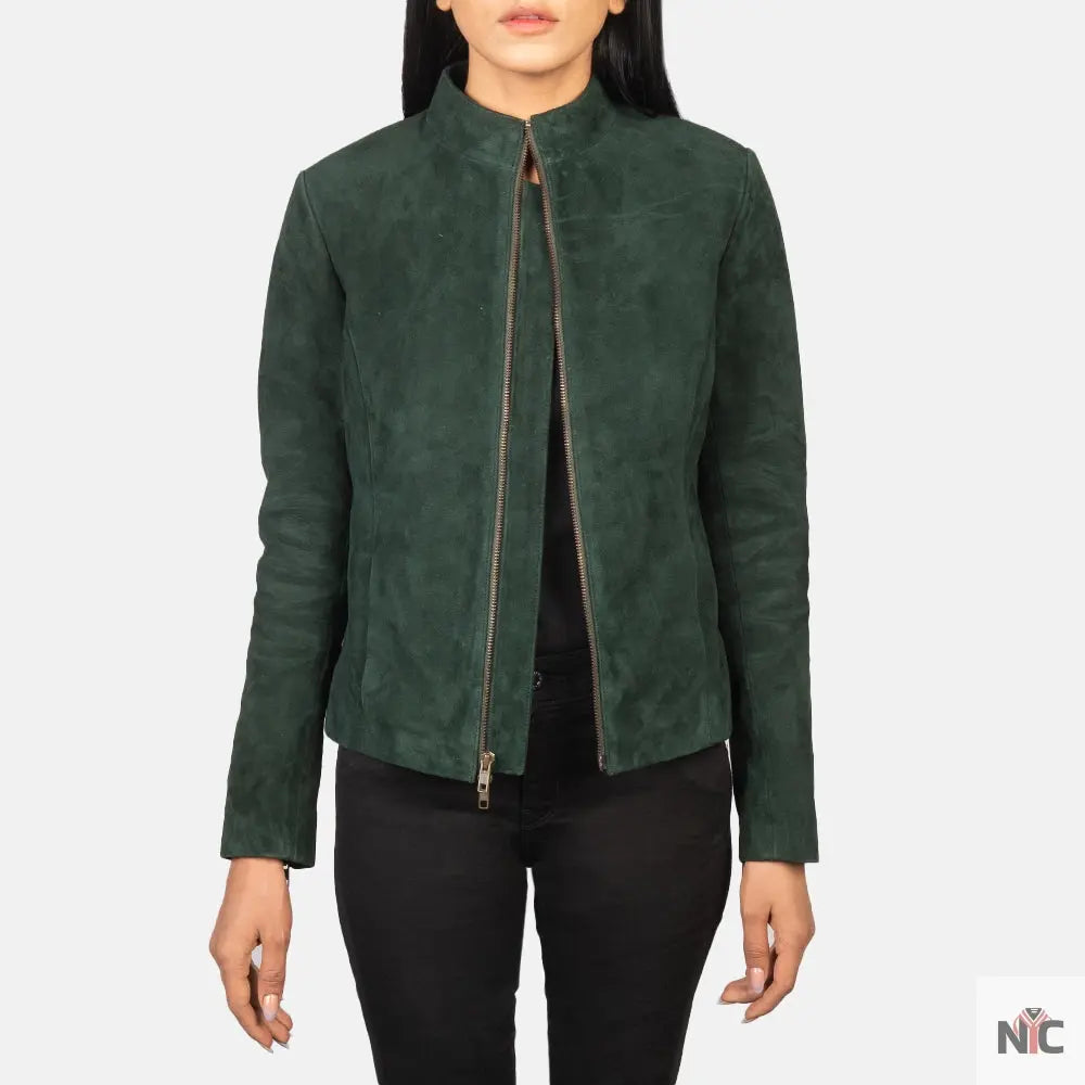 Rumella Green Suede Biker Jacket ‐ Female / S