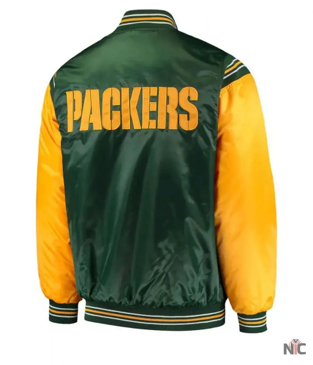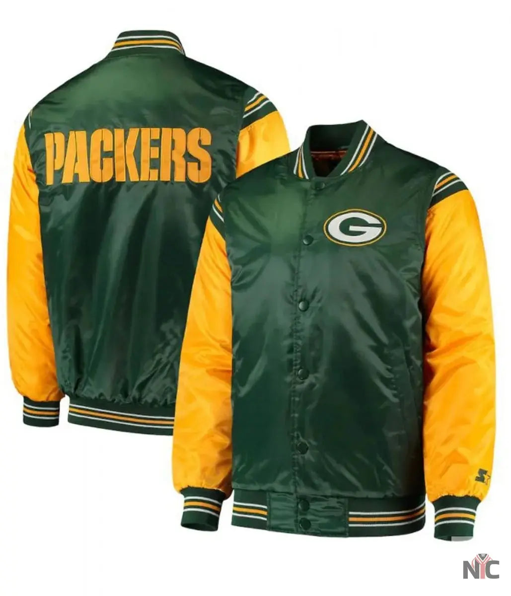 Starter Green Bay Packers Yellow and Green Satin Jacket