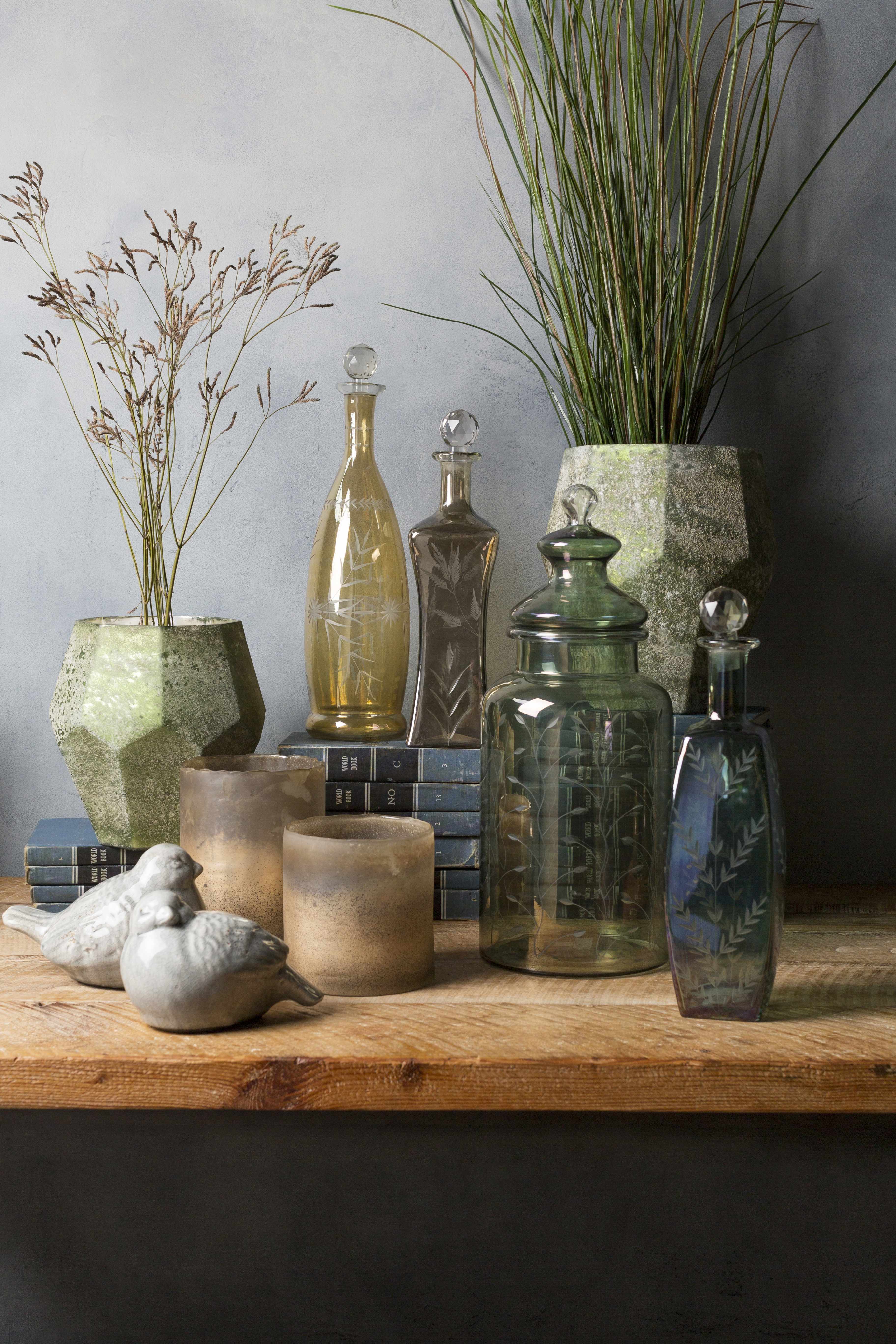 Stewartville Green Etched Glass Jar ‐ 18"H x 8"W x 8"D