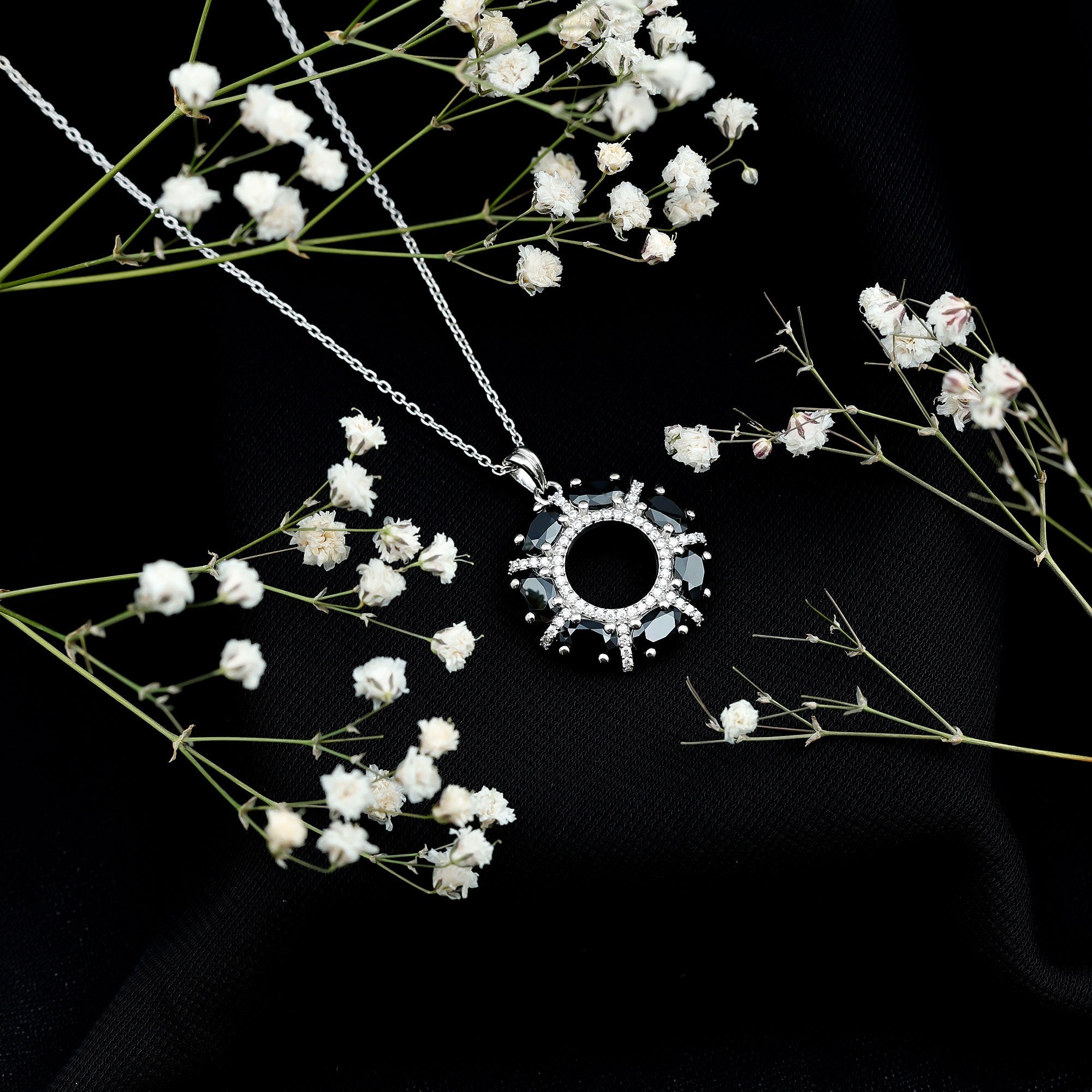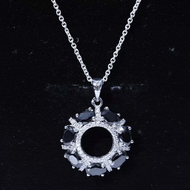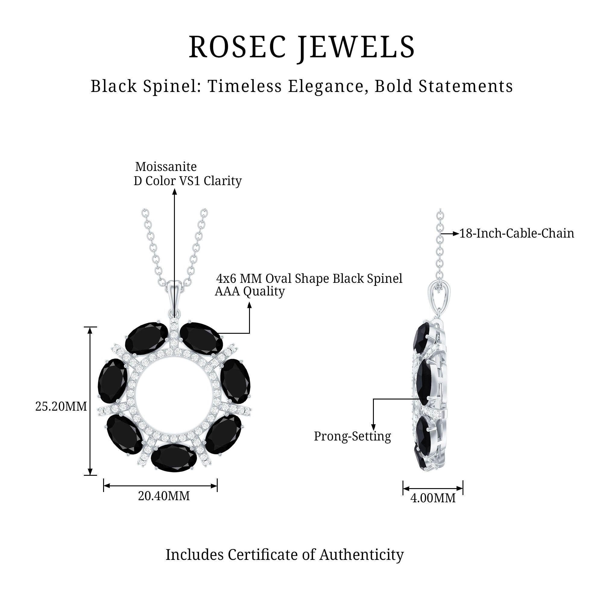 Black Spinel - Brilliant Cut Black Spinel Gemstone exhibits AAA Quality and possess vibrant color. Semi-Precious stone summons calmness, balance and adaptability. It is Natural and Certified, helps in balancing yin and yang and bring determination to the wearer. It is moderately Durable and it has captivating luster which keeps the desirability of this stone intact.Moissanite - D-VS1 Quality exhibited by Brilliant Cut Moissanite give justice to its incredible value. Moissanite summons beauty, attractiveness and unbreakable love. It is Certified and helps in bringing success and luxury to the wearer. Its Durability and Luster is enhanced by Lab Created Treatment, to further make it a captivating and desirable gem.