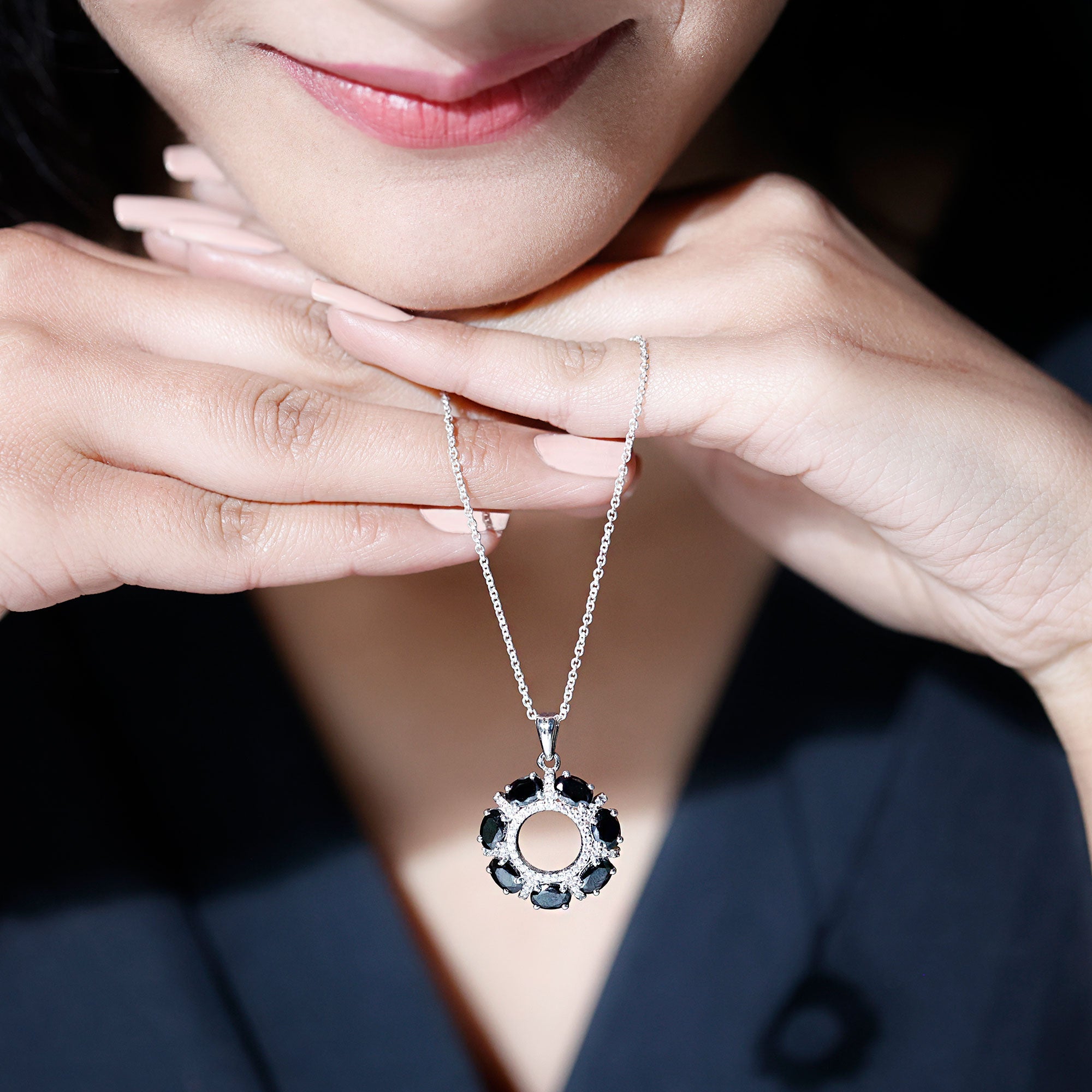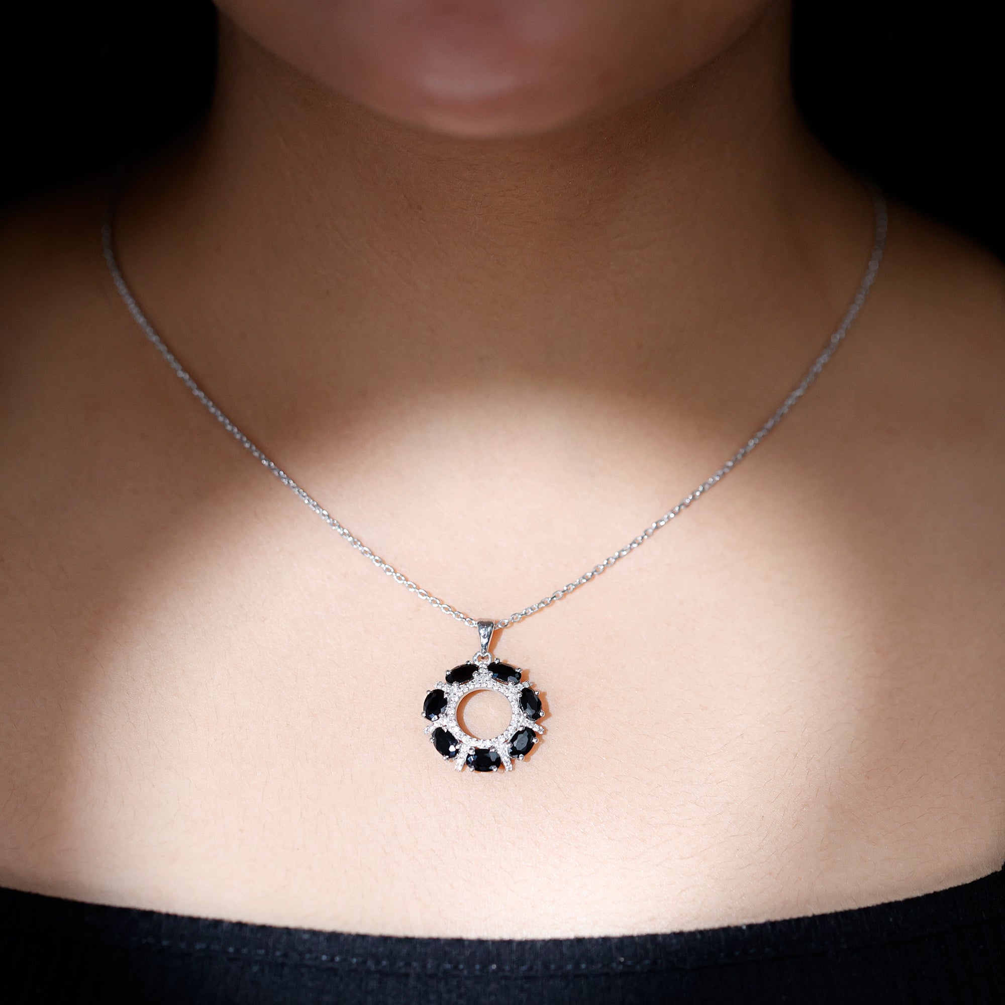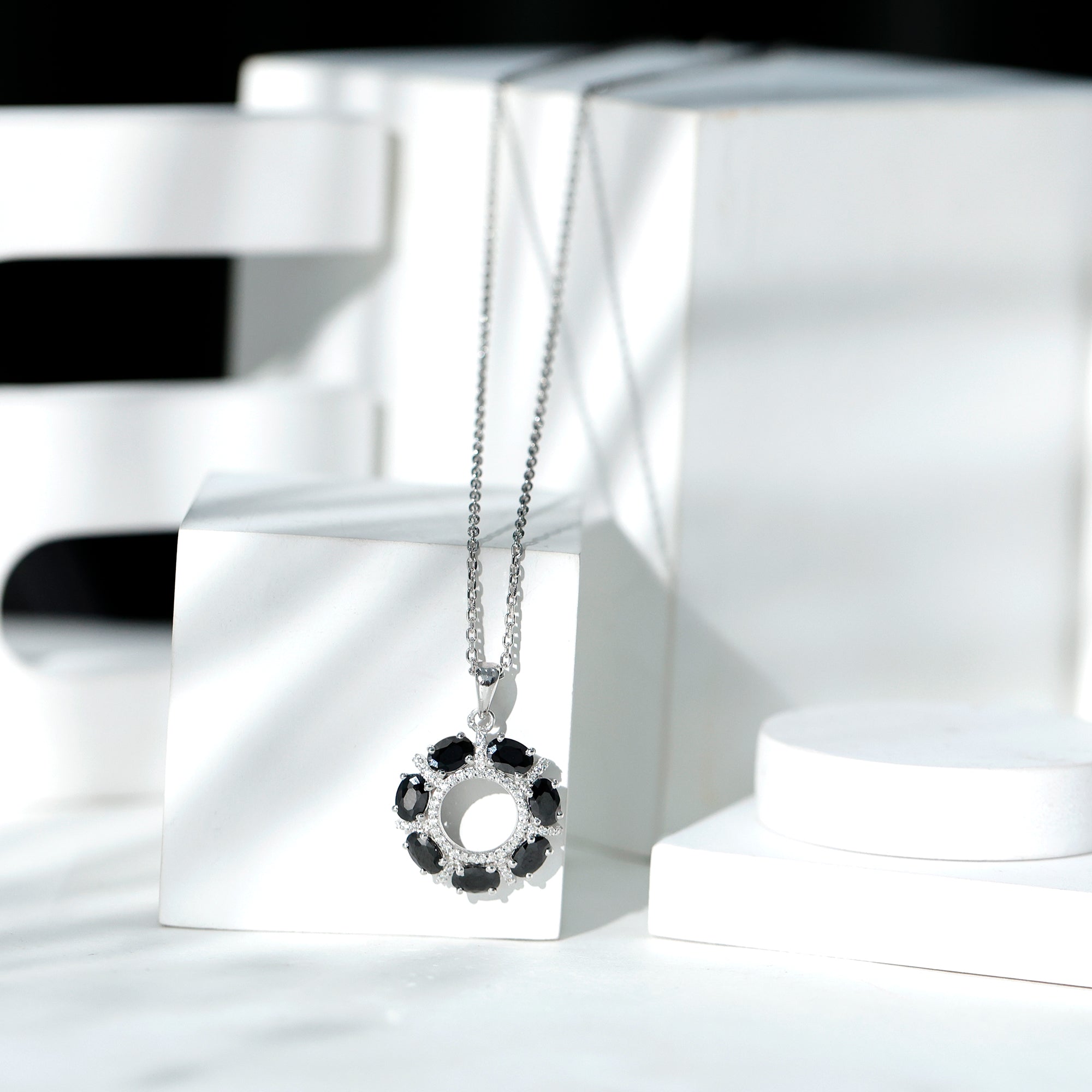 Black Spinel - Brilliant Cut Black Spinel Gemstone exhibits AAA Quality and possess vibrant color. Semi-Precious stone summons calmness, balance and adaptability. It is Natural and Certified, helps in balancing yin and yang and bring determination to the wearer. It is moderately Durable and it has captivating luster which keeps the desirability of this stone intact.Moissanite - D-VS1 Quality exhibited by Brilliant Cut Moissanite give justice to its incredible value. Moissanite summons beauty, attractiveness and unbreakable love. It is Certified and helps in bringing success and luxury to the wearer. Its Durability and Luster is enhanced by Lab Created Treatment, to further make it a captivating and desirable gem.