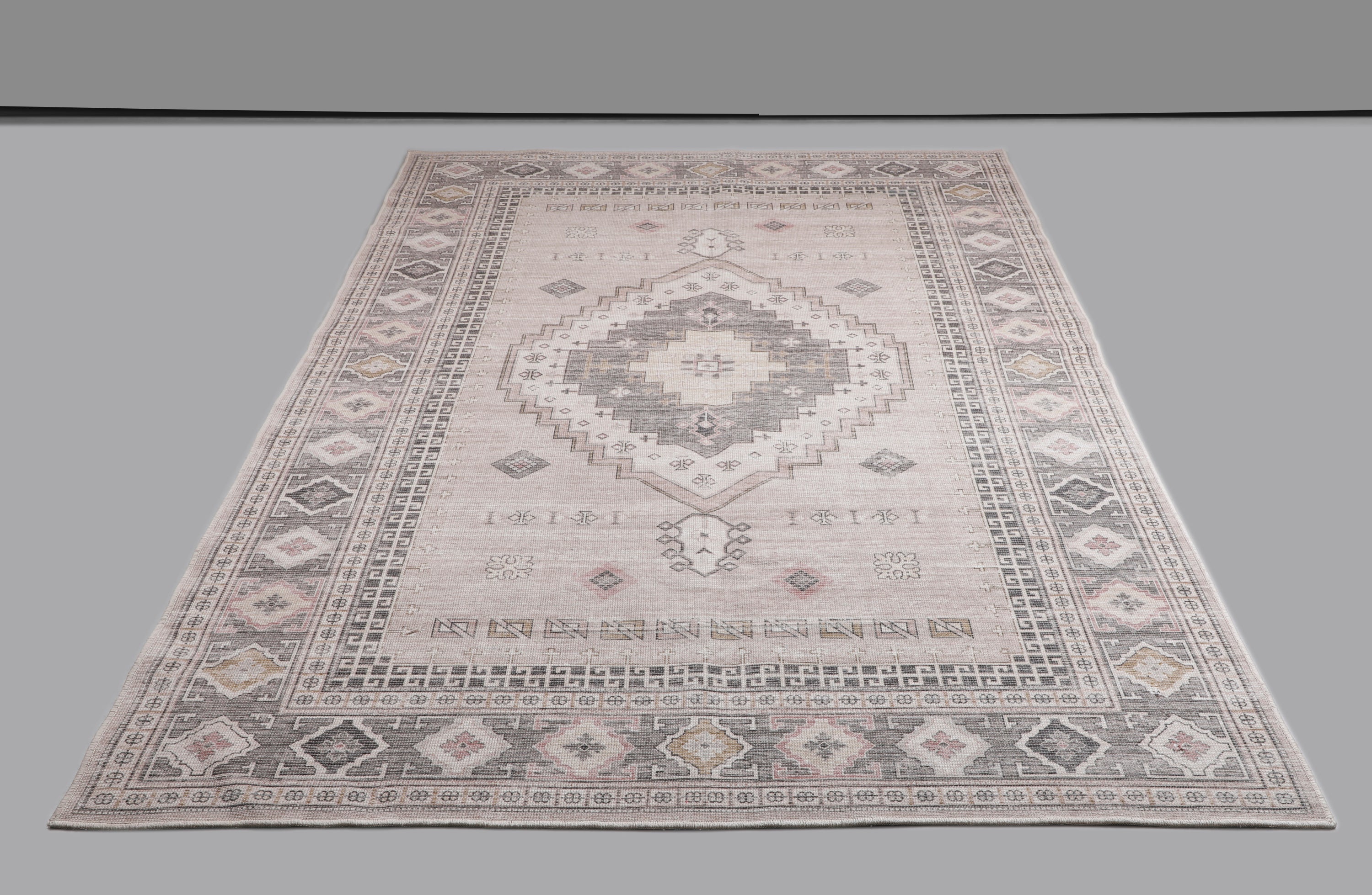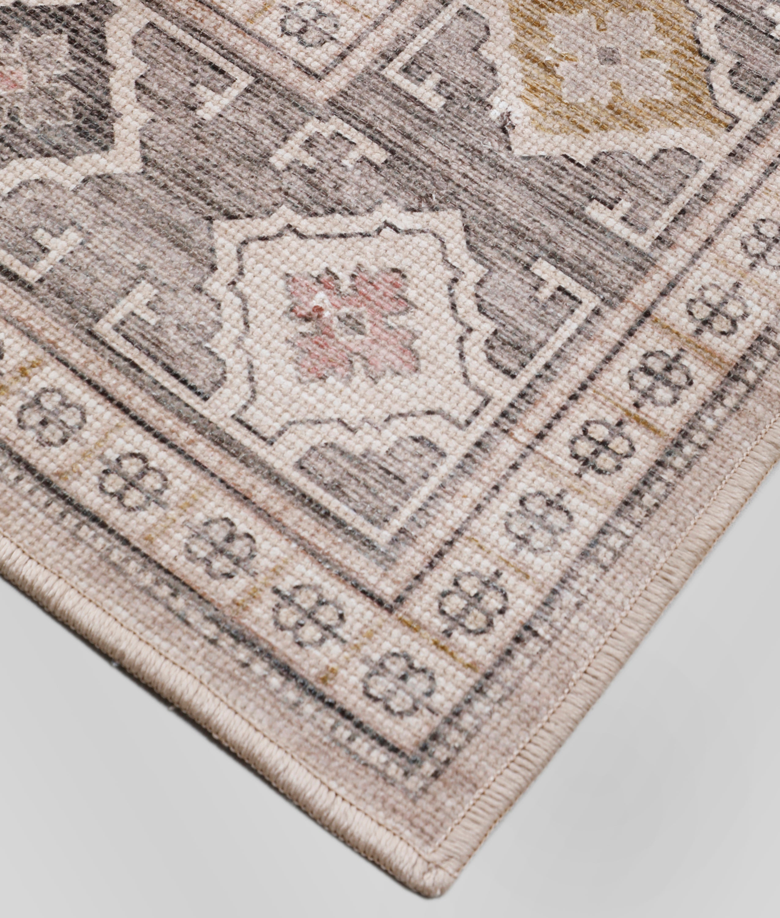 Mackenzie Akira Natural, Blush, Gold, Black, Charcoal and Beige Cotton Blend Washable Area Rug