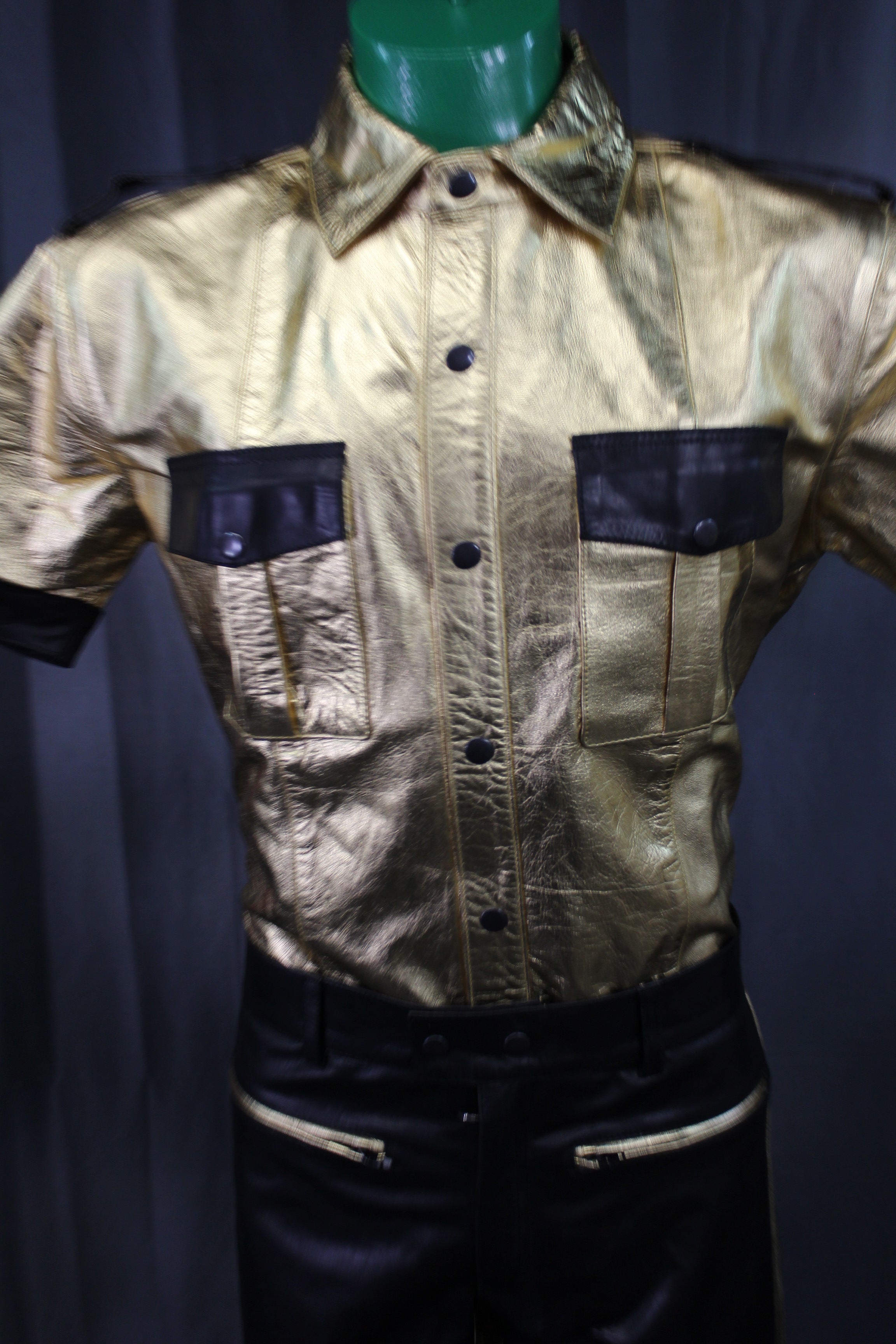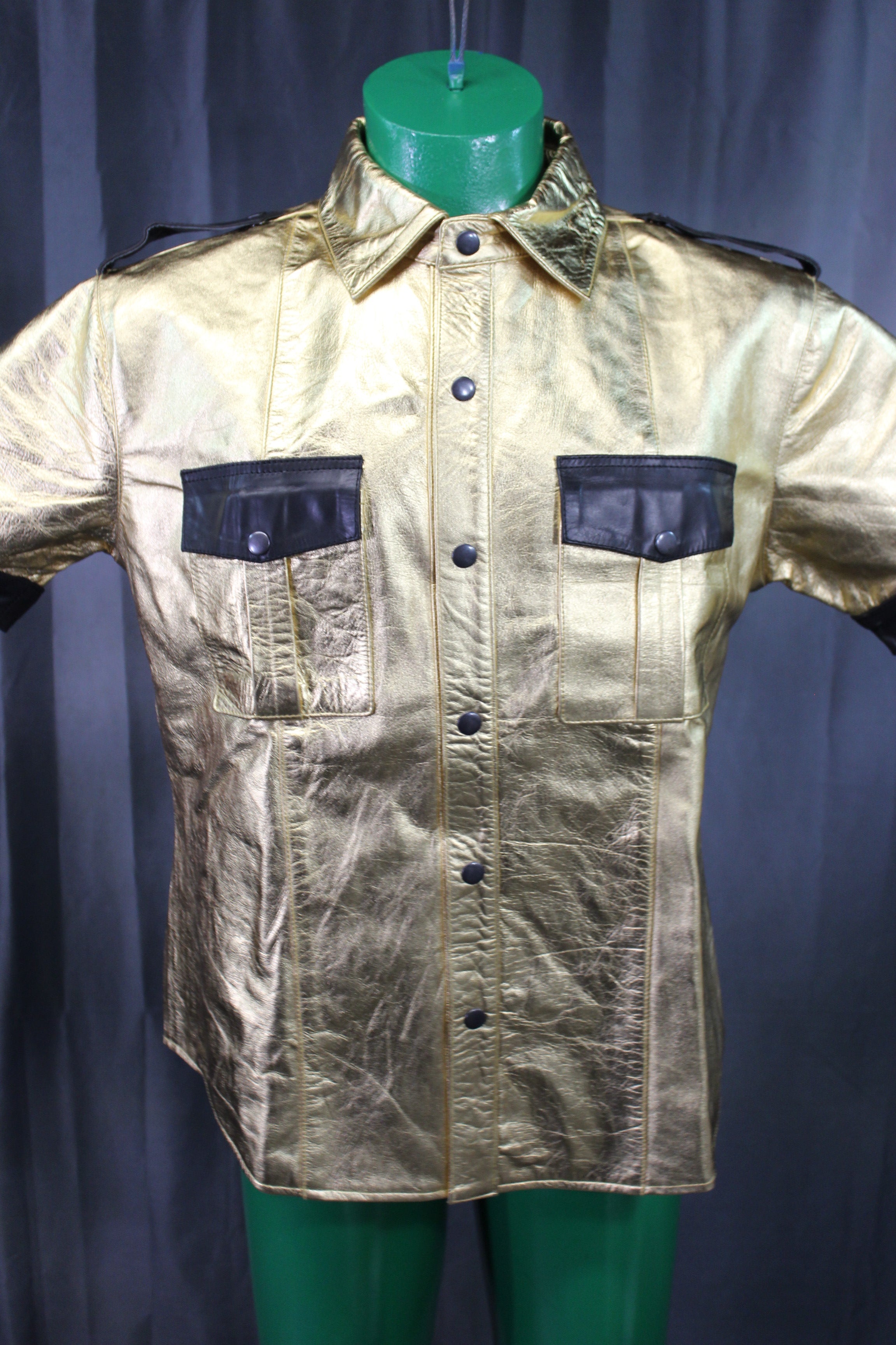 OnF Leather Shirts in Gold with Black Highlights ‐ Large