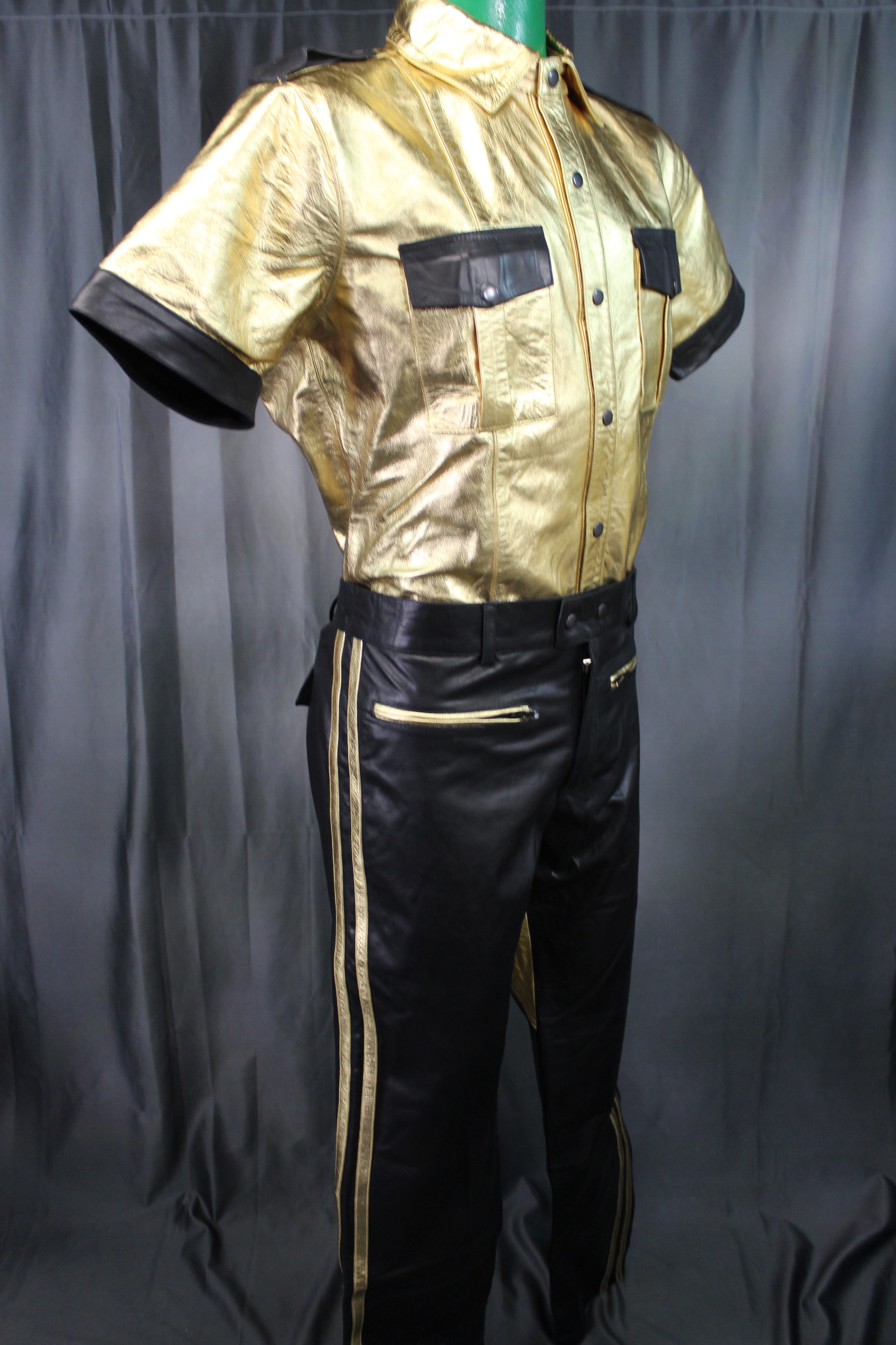 OnF Leather Shirts in Gold with Black Highlights ‐ X-Large