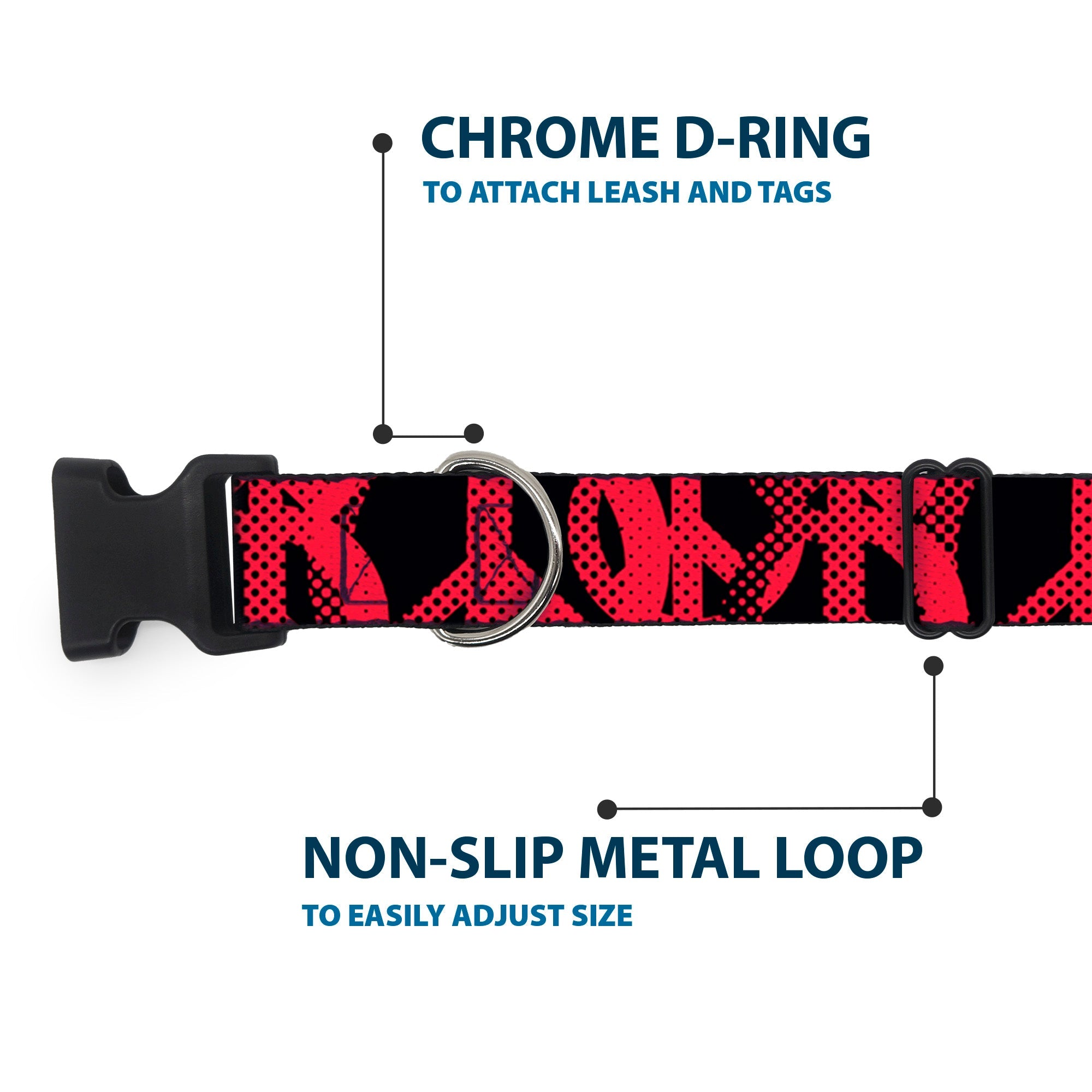 Vibrant and bold, this beautiful, polyester dog collar is made to show off your dog's unique style through all the seasons. With an overengineered plastic buckle and strong D-ring, this durable collar can hold up to whatever your dog can dish out. This product is officially licensed by Buckle-Down.