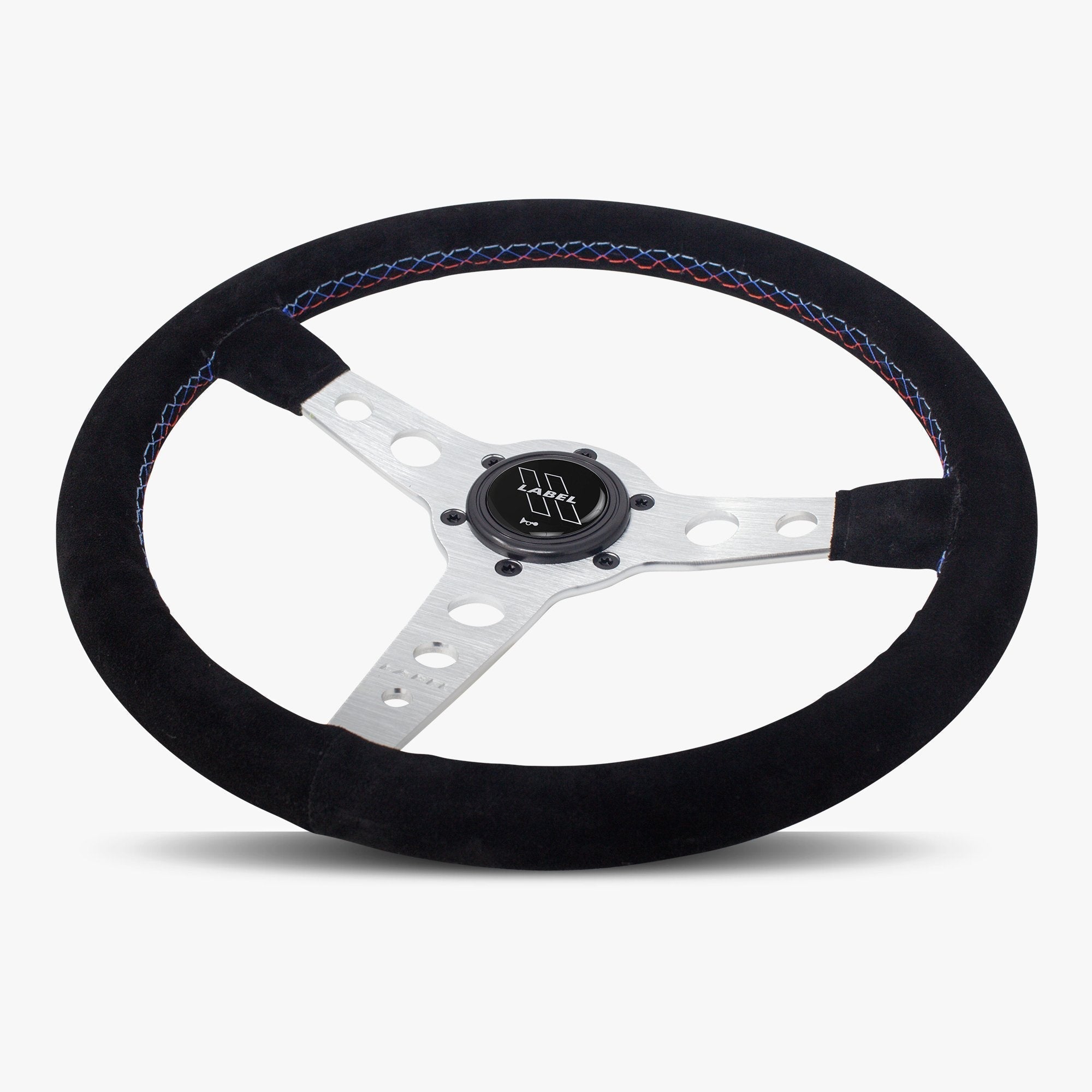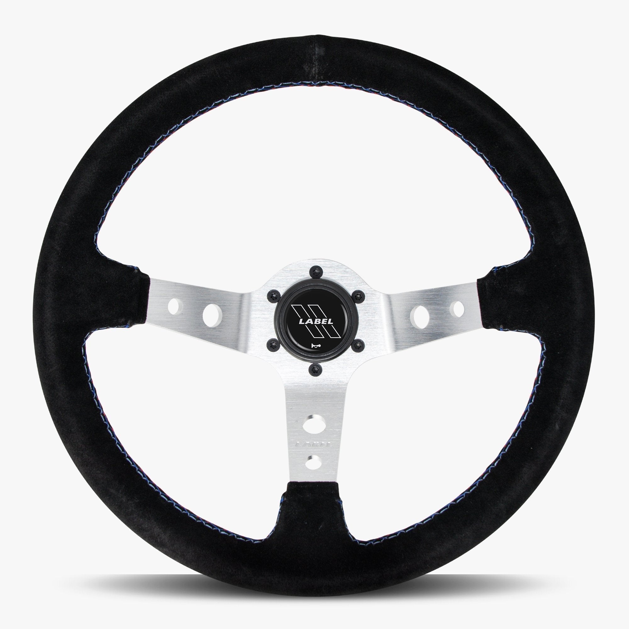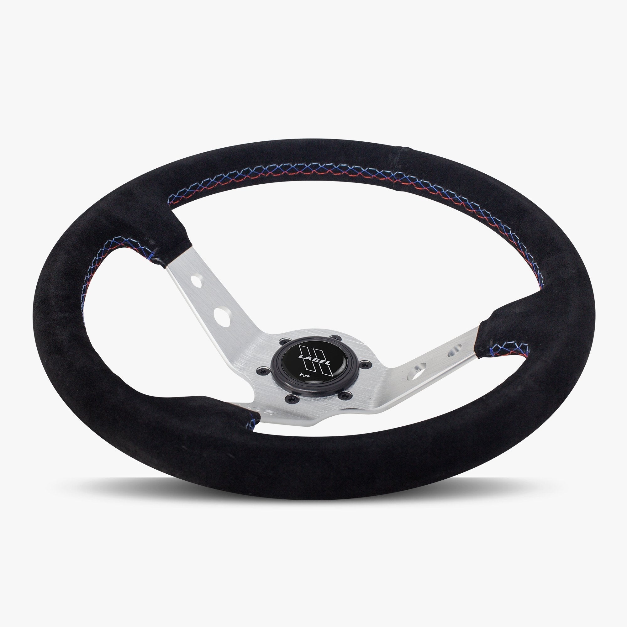 The Daytona | Black Alcantara Suede | Silver Spoke | Bavarian Stitch ‐ The Daytona Plus (100mm depth)