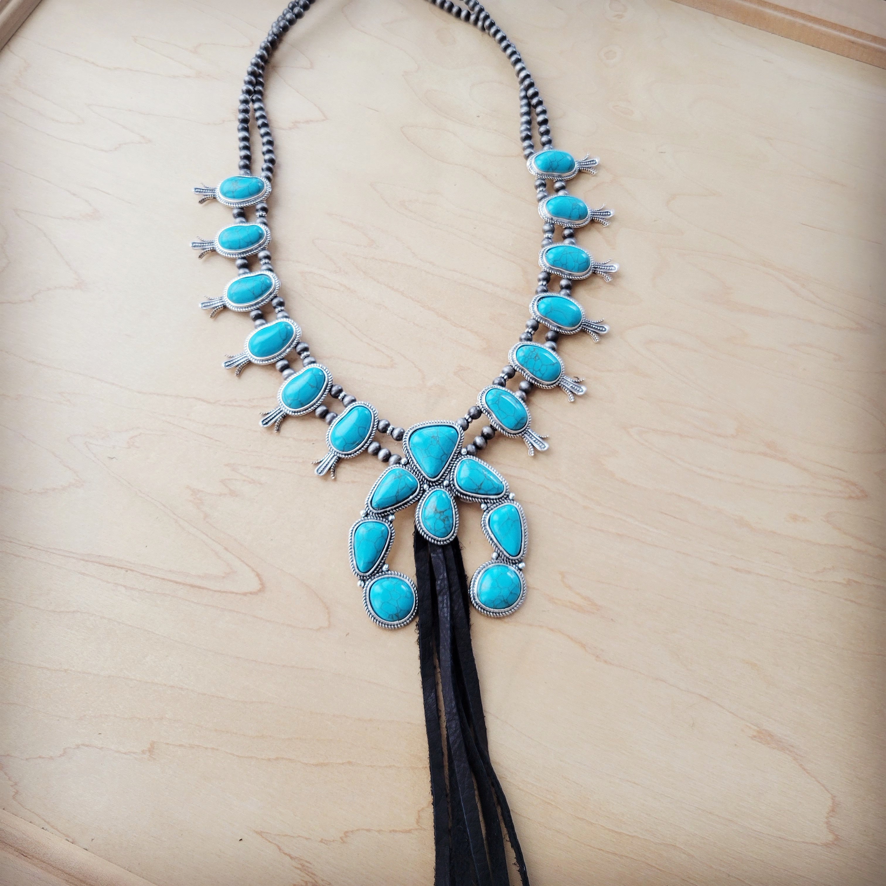 Turquoise Squash Blossom Necklace w/ Long Black Tassel 262b
