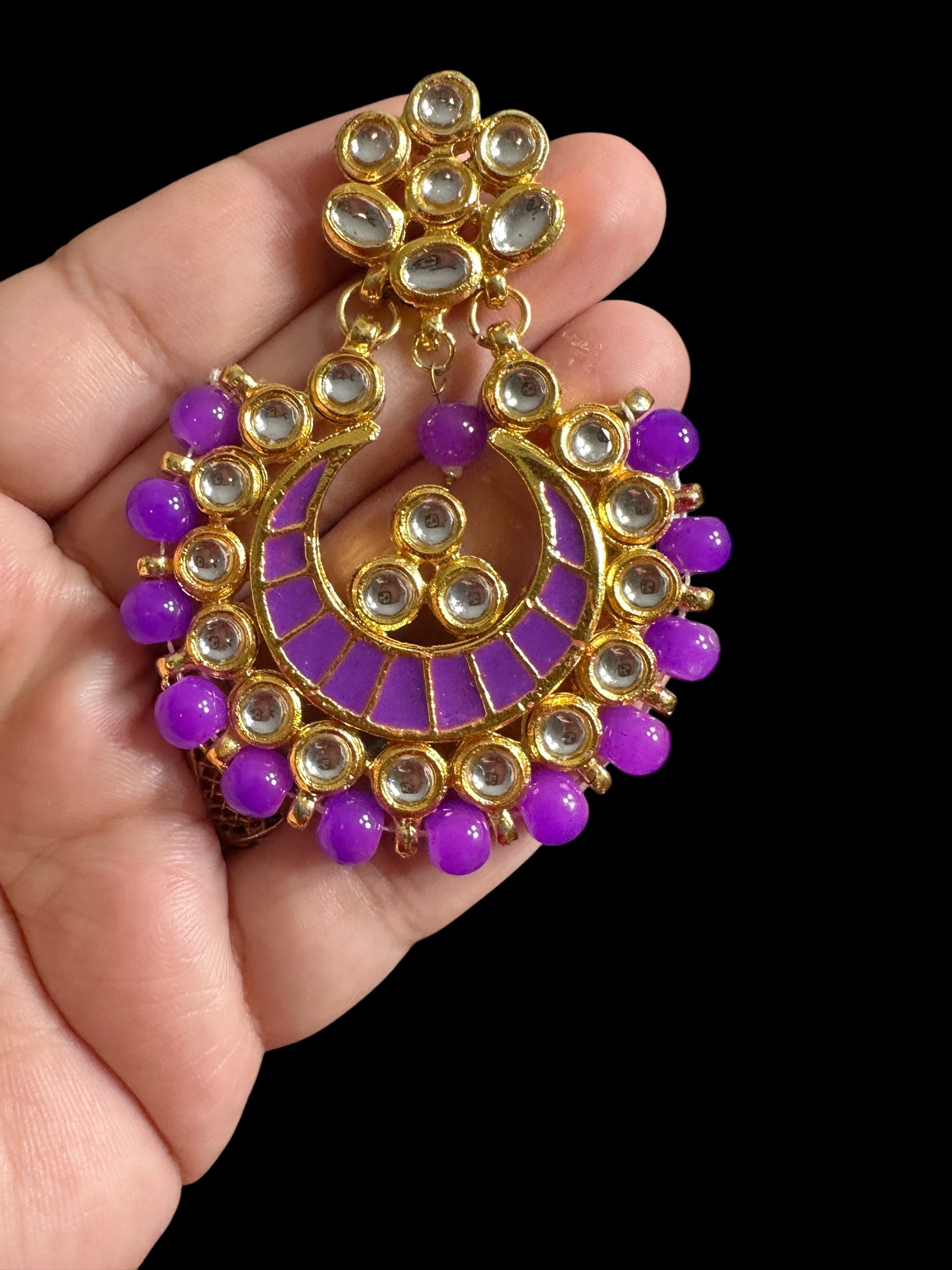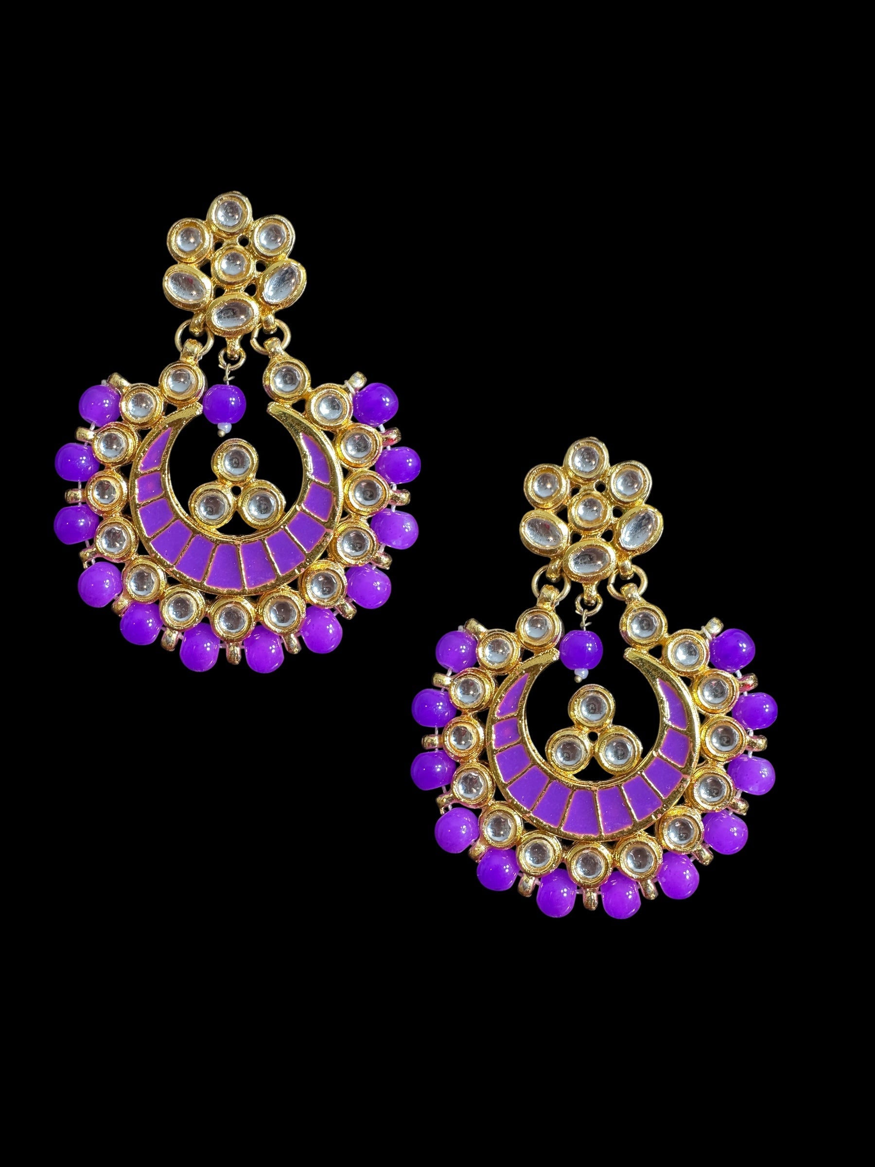 Kundan meena earrings - purple ( READY TO SHIP )