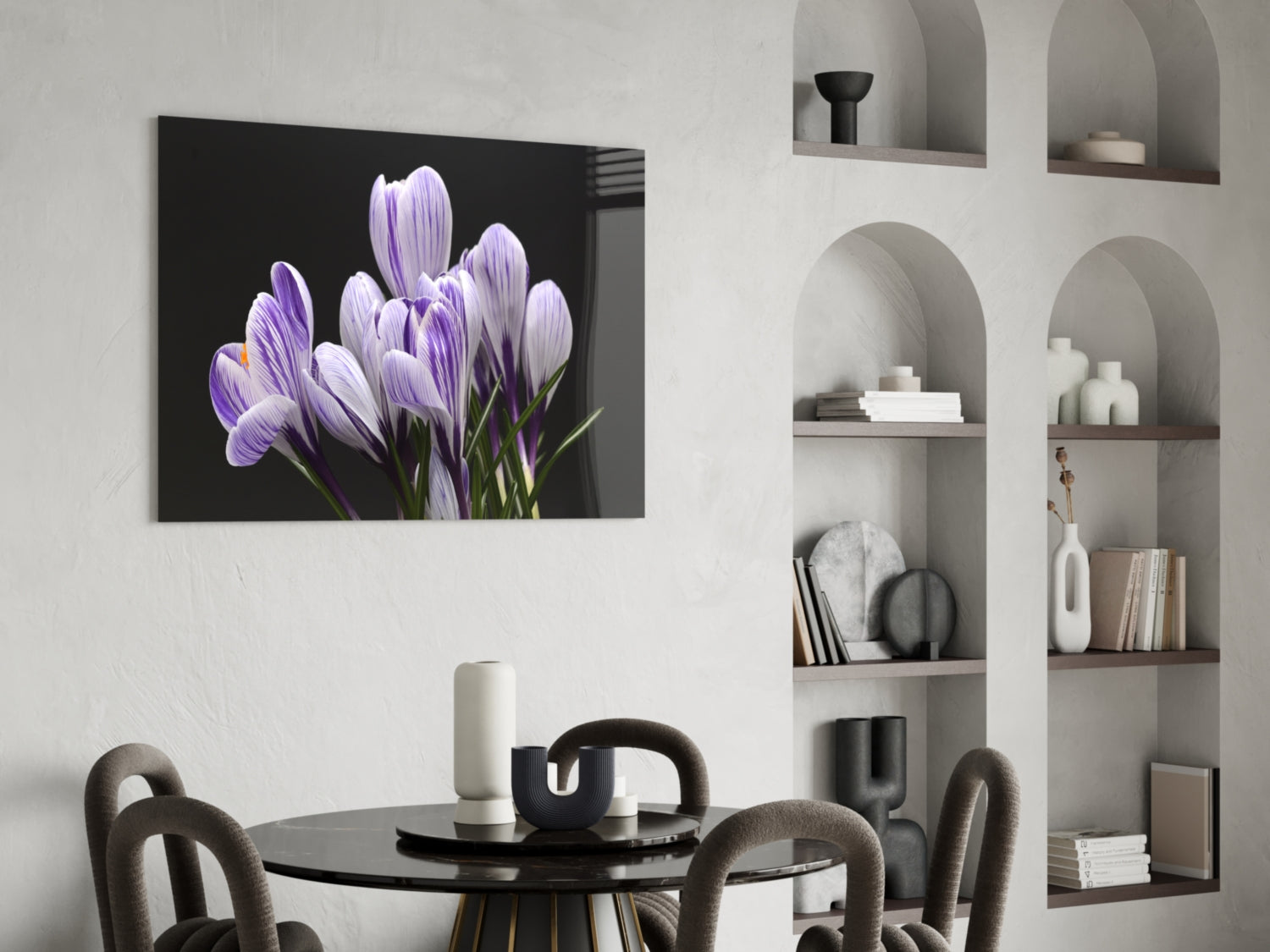 Purple Flowers Glass Wall Art ‐ 35" x 24"