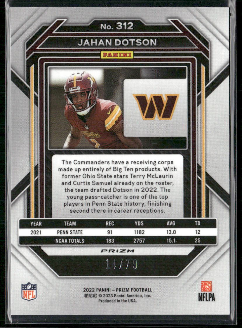 2022 Panini Prizm #312 Jahan Dotson No Huddle Blue #/79