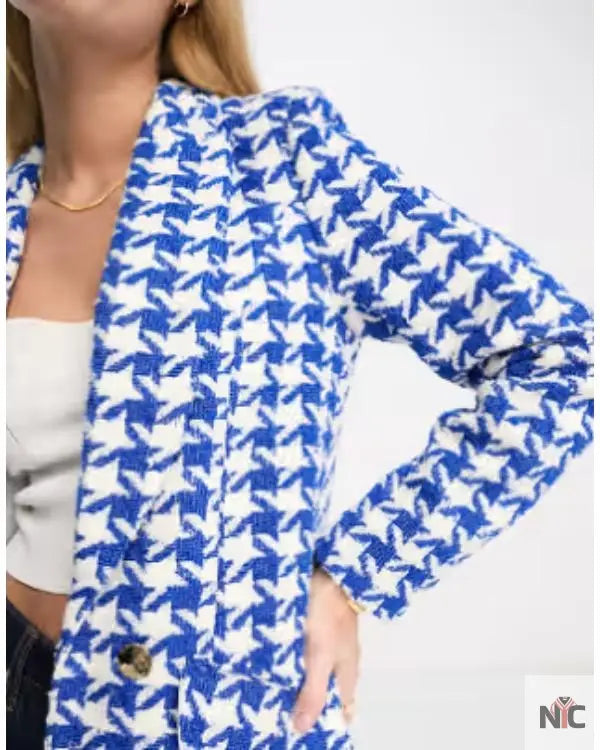 Call Me Bae S01 Ananya Panday Blue Houndstooth Blazer ‐ Female / 2XL