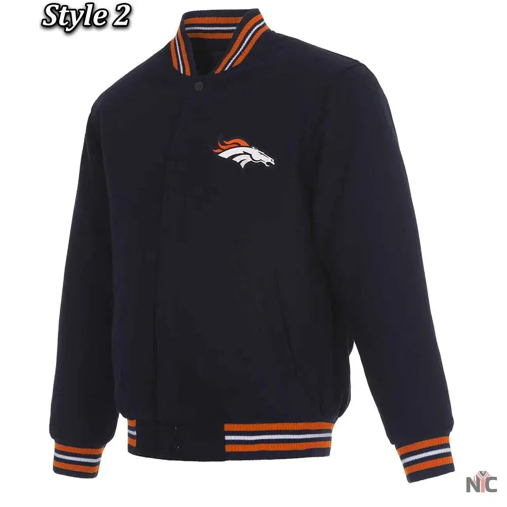 Denver Broncos Wool Varsity Blue Jacket ‐ Male / S / Style 02