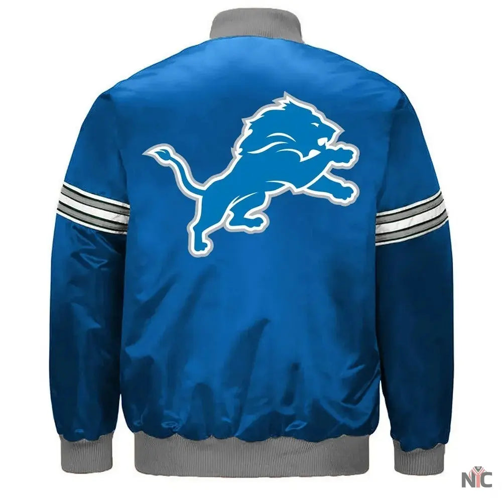 Detroit Lions Striped Blue Satin Jacket ‐ Male / S