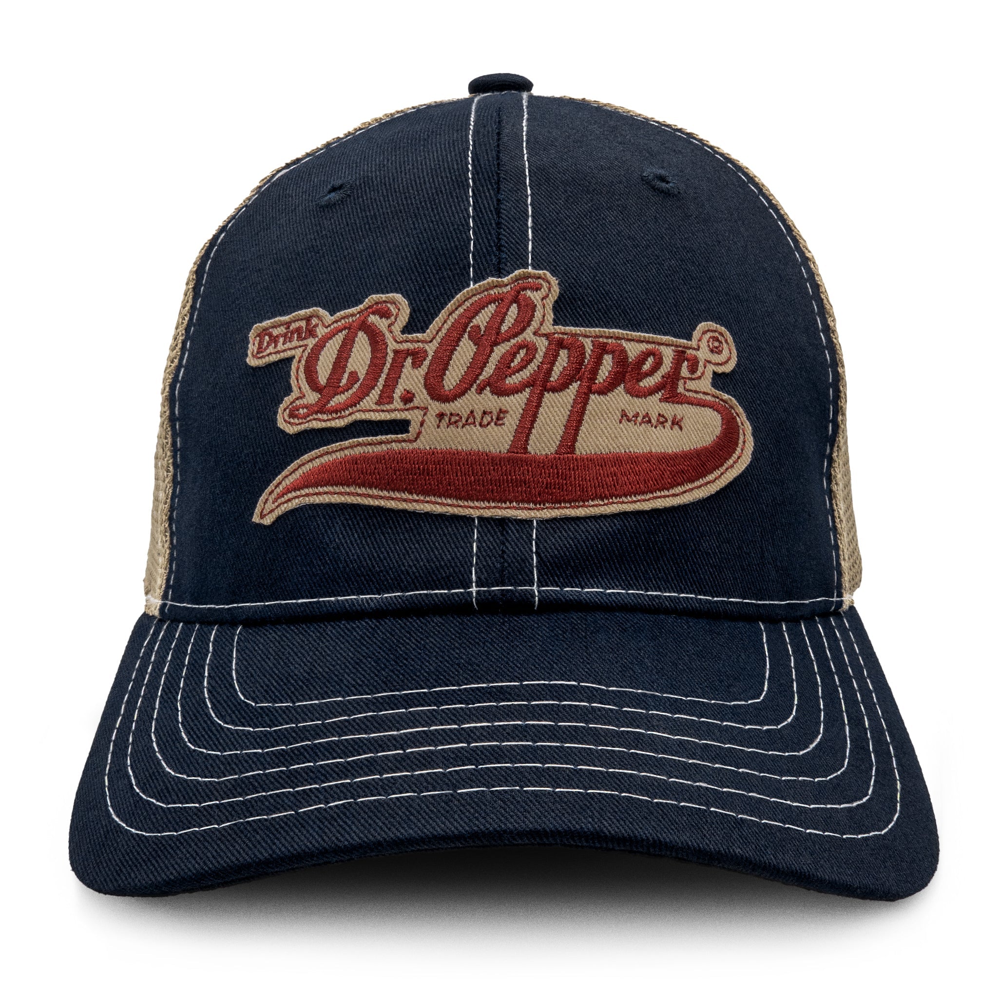 The Dr Pepper logo is classic design for a classic drink! Unlike your own doctor's signature, this Dr Pepper signature hat is easy to read! Show off your love for Dr Pepper with this hat featuring a vintage, stitched-on "Drink Dr Pepper" logo patch.