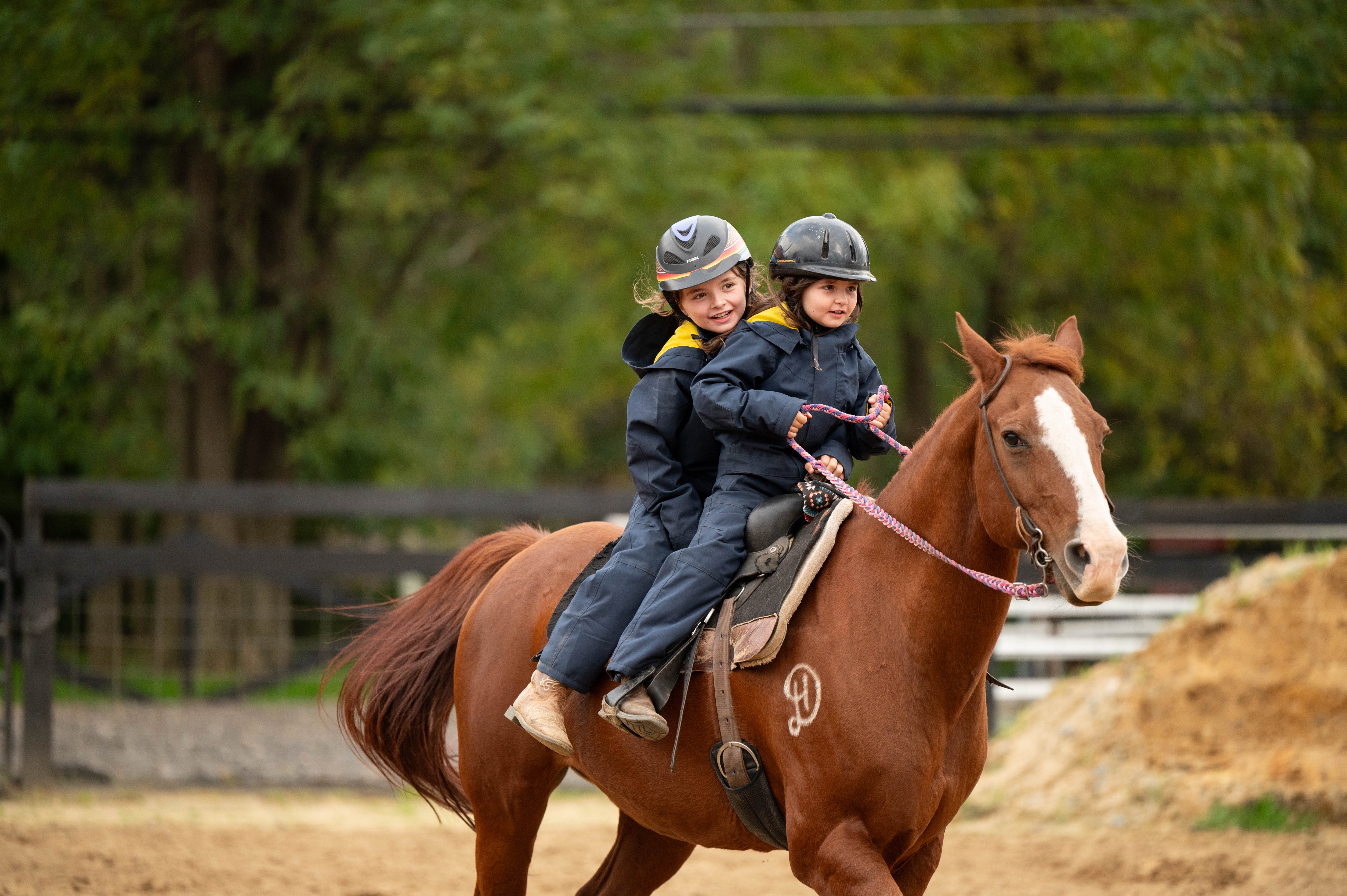 The Kids’ Winter Insulated Jumpsuit keeps young riders warm, dry, and ready for winter adventures at the barn. With cozy insulation, a waterproof shell, easy-on leg zips, and plenty of pockets for pony treats, it’s made for everything from grooming sessions to snowy rides. Built tough for the barn, fun enough for the paddock.