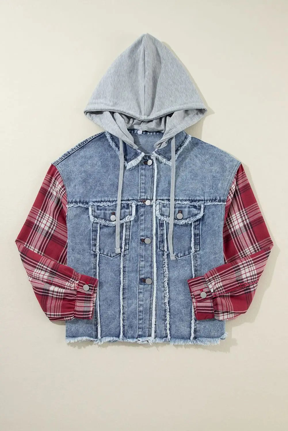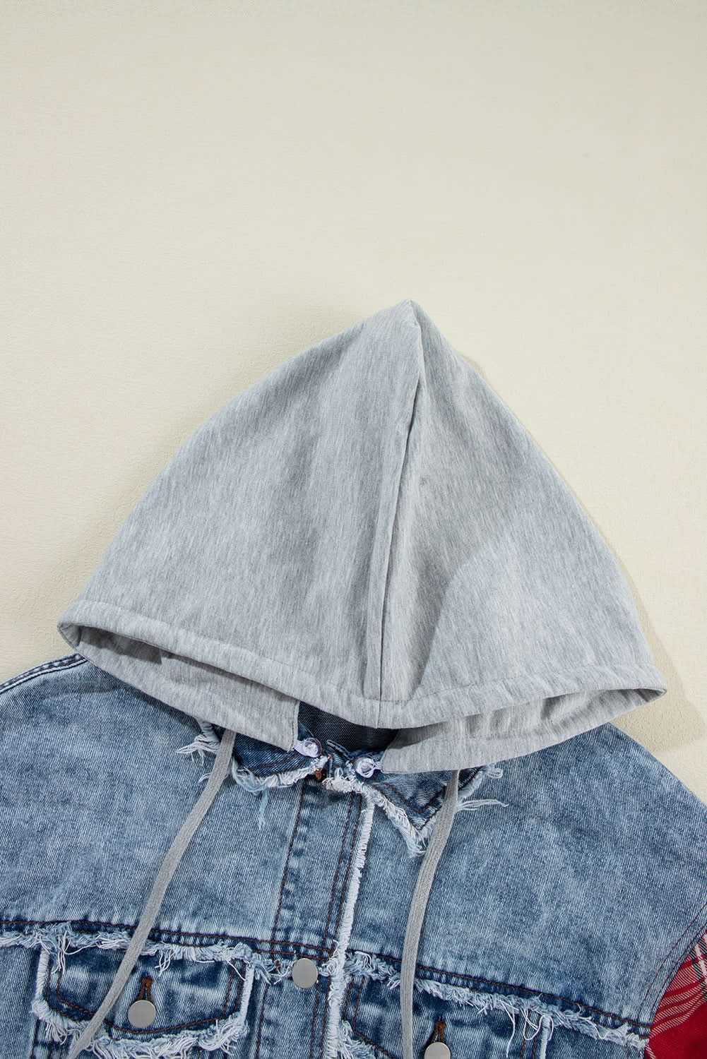 Love Salve Beau Blue Plaid Patchwork Hooded Denim Jacket
