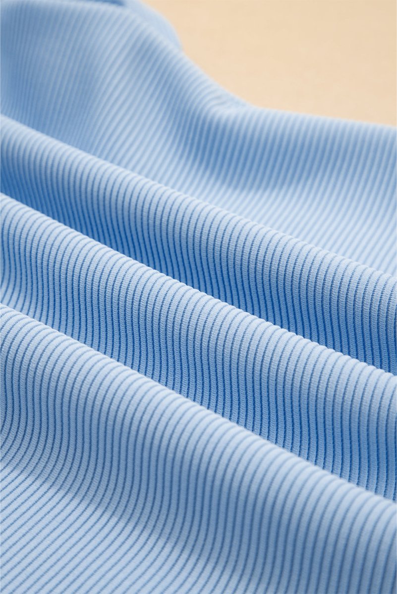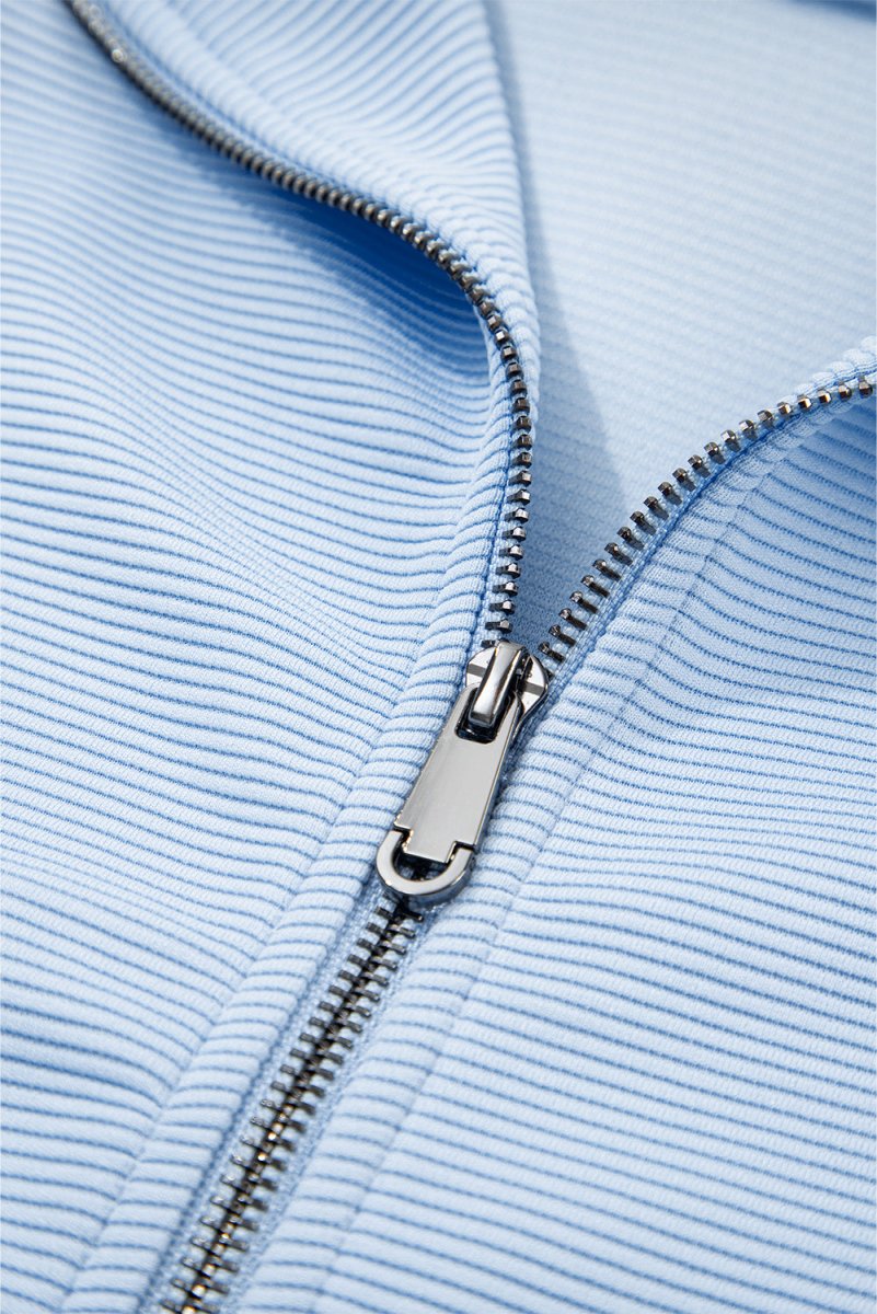 Love Salve Beau Blue Textured Ruffled Sleeve Zipped Top And ‐ Beau Blue / L / 95%Polyester+5%Elastane