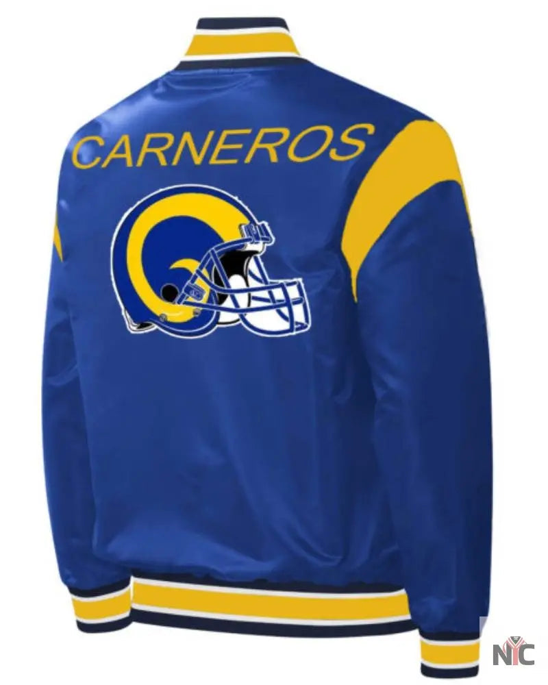 NFL La Rams Carneros Blue And Yellow Satin Jacket