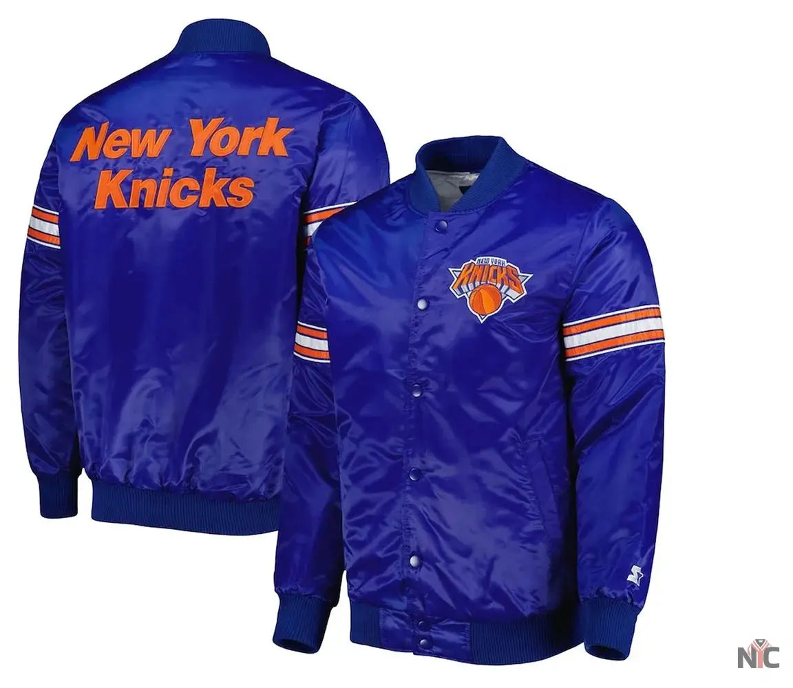 NY Knicks Pick & Roll Blue Satin Jacket ‐ Male / 4XL