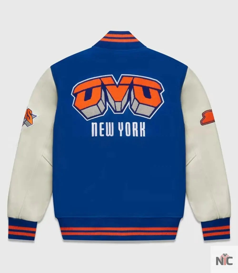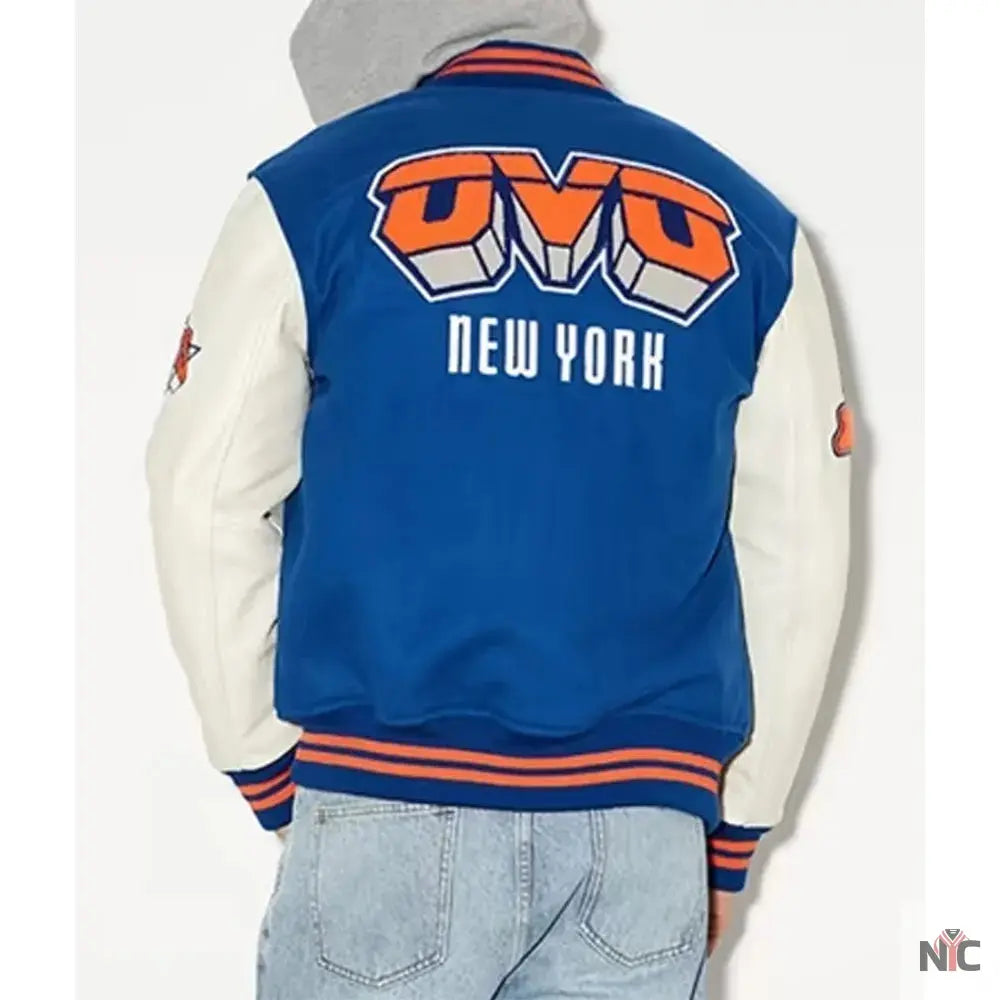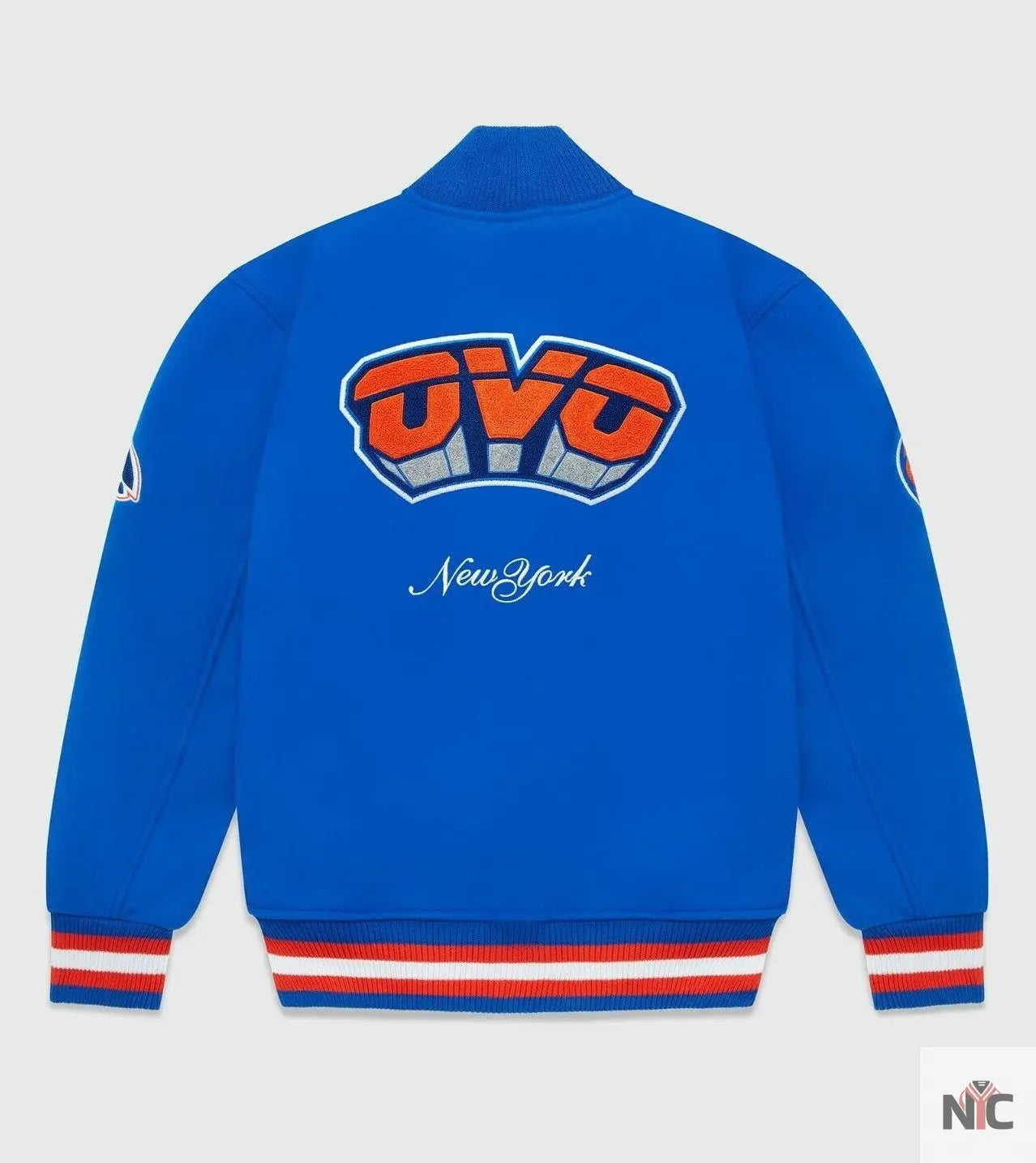 OVO x NBA New York Knicks Blue Varsity Jacket
