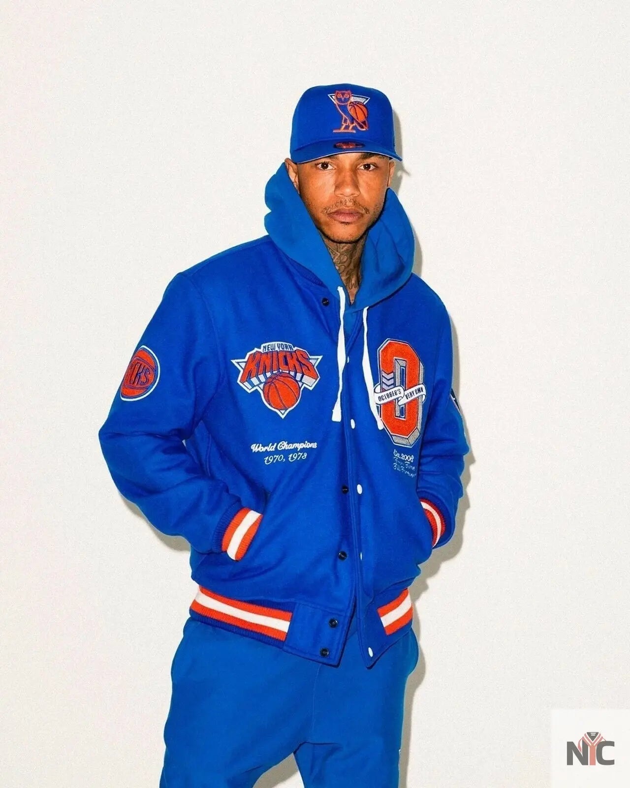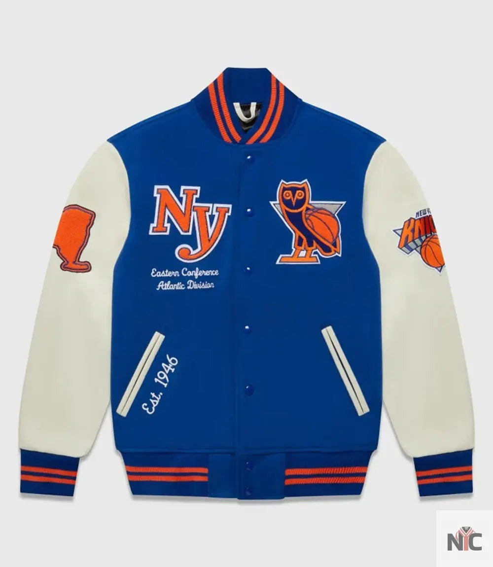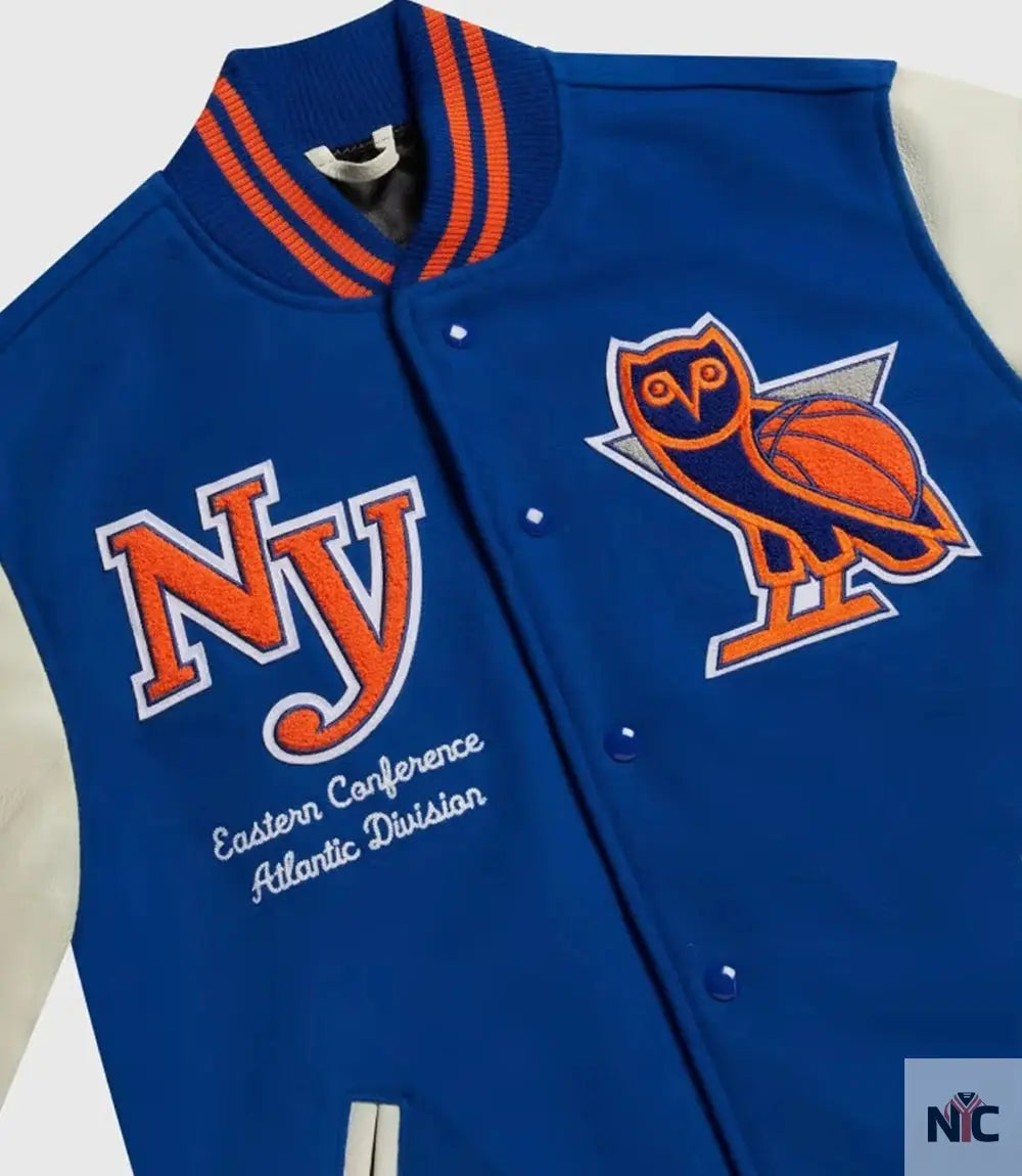 OVO x NBA New York Knicks Blue Varsity Jacket