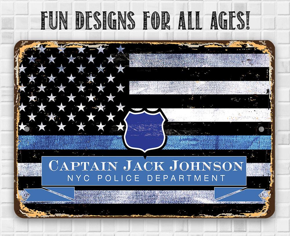 Personalized Metal Sign - Thin Blue Line Police Support -8" x 12" or 12" x 18" Use Indoor/Outdoor - Great Decor and Gift for Police Officers
