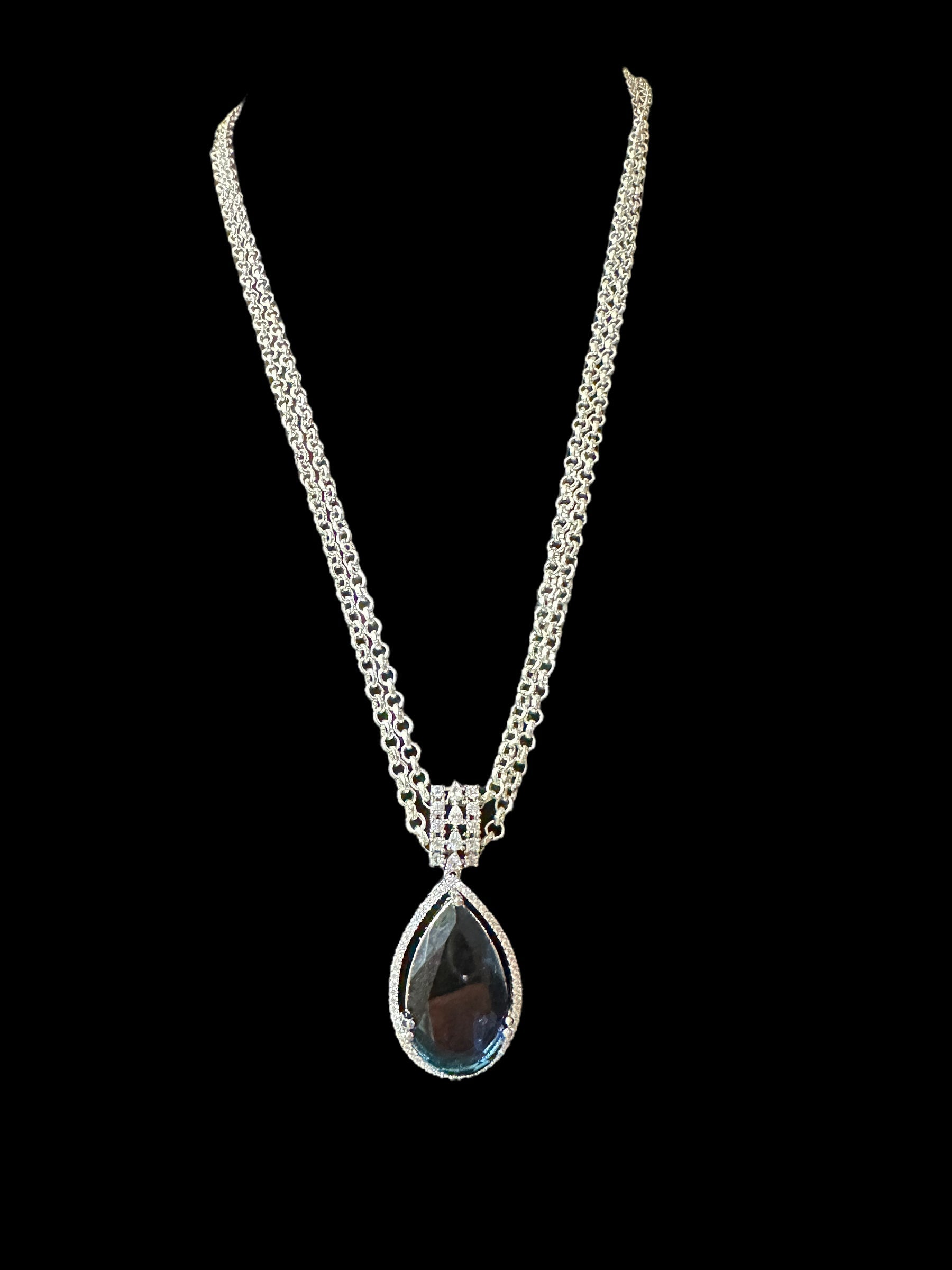 PS350 silver plated Cz pendant set- blue (READY TO SHIP)